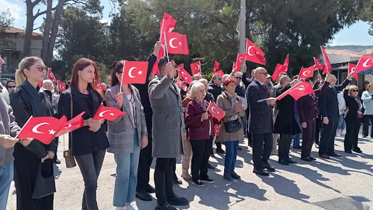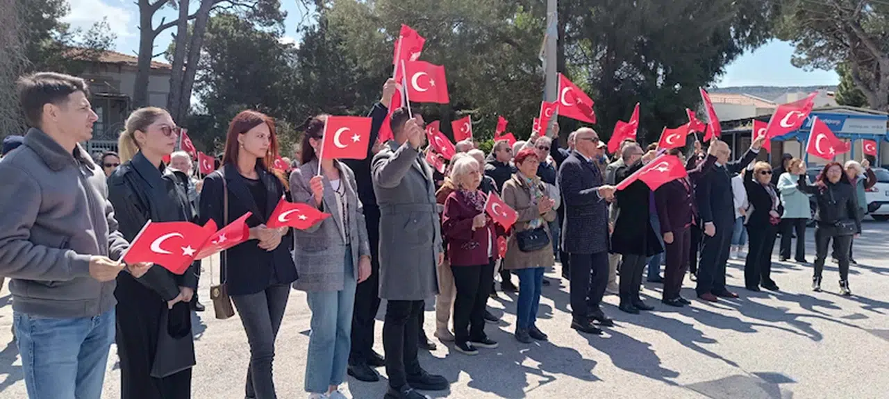 Katılımcılar Karşıyaka Belediye Bandosu'nun çaldığı marş ve şarkılara eşlik ederek ve ellerindeki Türk bayraklarını sallayarak yaklaşık bir kilometrelik güzergahı yürüyerek geçti. Bu sırada yol güzergahındaki esnaf ve vatandaşlar alkışlarıyla katılımcılara tempo tutarak destek verdi. Marş ve şarkılarla bandonun mini konseri Nihat Dirim Barış ve Demokrasi Meydanı'nda bir süre devam etti. Daha sonra Reha Midilli Kültür Merkezi'ne geçildi. Burada saygı duruşunda bulunulup, İstiklal Marşı'nın okunmasının ardından Atatürkçü Düşünce Derneği (ADD) Foça Şubesi Başkanı Ali Altunbahar ve Foça Belediye Başkanı Saniye Bora Fıçı birer konuşma yaptılar.