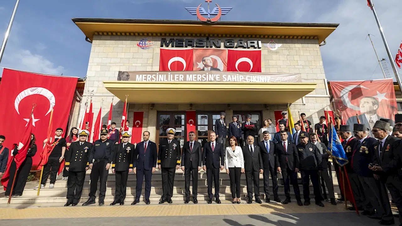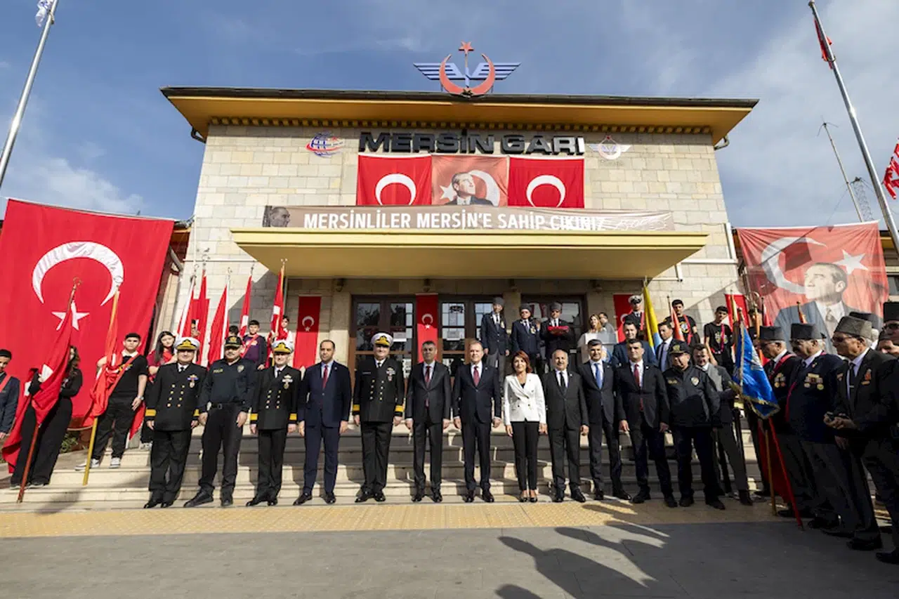 Atatürk'ün Mersin'e gelişinin 102'nci yıl dönümü dolayısıyla ilk olarak tren garında tören gerçekleştirildi. Vali Atilla Toros, tren garında Atatürk'ün Mersin'e gelişini temsilen gazileri taşıyan treni karşılayıp, Türk bayrağını öperek teslim aldı. Buradaki törene Vali Toros'un yanı sıra Deniz Kuvvetleri Komutanlığı Harekat ve Eğitim Daire Başkanı Tuğamiral Tayfun Karataş, Büyükşehir Belediye Başkanı Vahap Seçer ile protokol üyeleri, gaziler ve öğrenciler katıldı. Tren garındaki törenin ardından protokol üyeleri, Cumhuriyet Meydanı'na geçti. Buradaki törende Vali Toros, Tuğamiral Karataş ve Büyükşehir Belediye Başkanı Seçer, Atatürk Anıtı'na çelenk sundu.