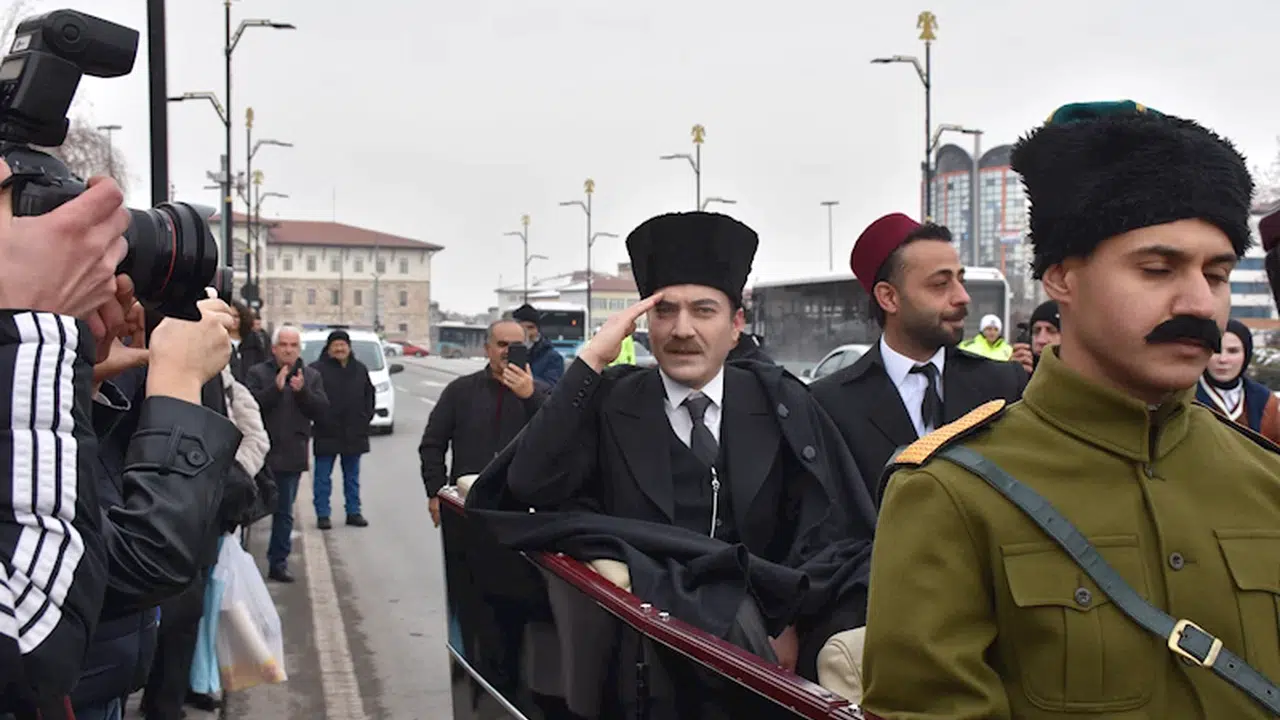 Eraydın AYTEKİN-Hüsnü Ümit AVCI/SİVAS, (DHA)- TÜRKİYE Cumhuriyeti’nin temellerinin atıldığı Sivas Kongresi döneminde Ulu Önder Mustafa Kemal Atatürk’ün 108 gün kaldığı kentten ayrılışı, 105'inci yıl dönümünde, temsili olarak canlandırıldı.