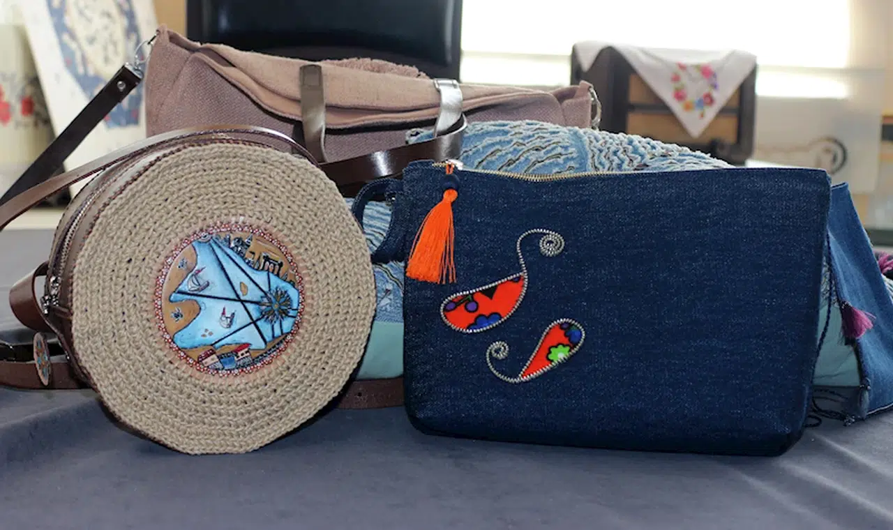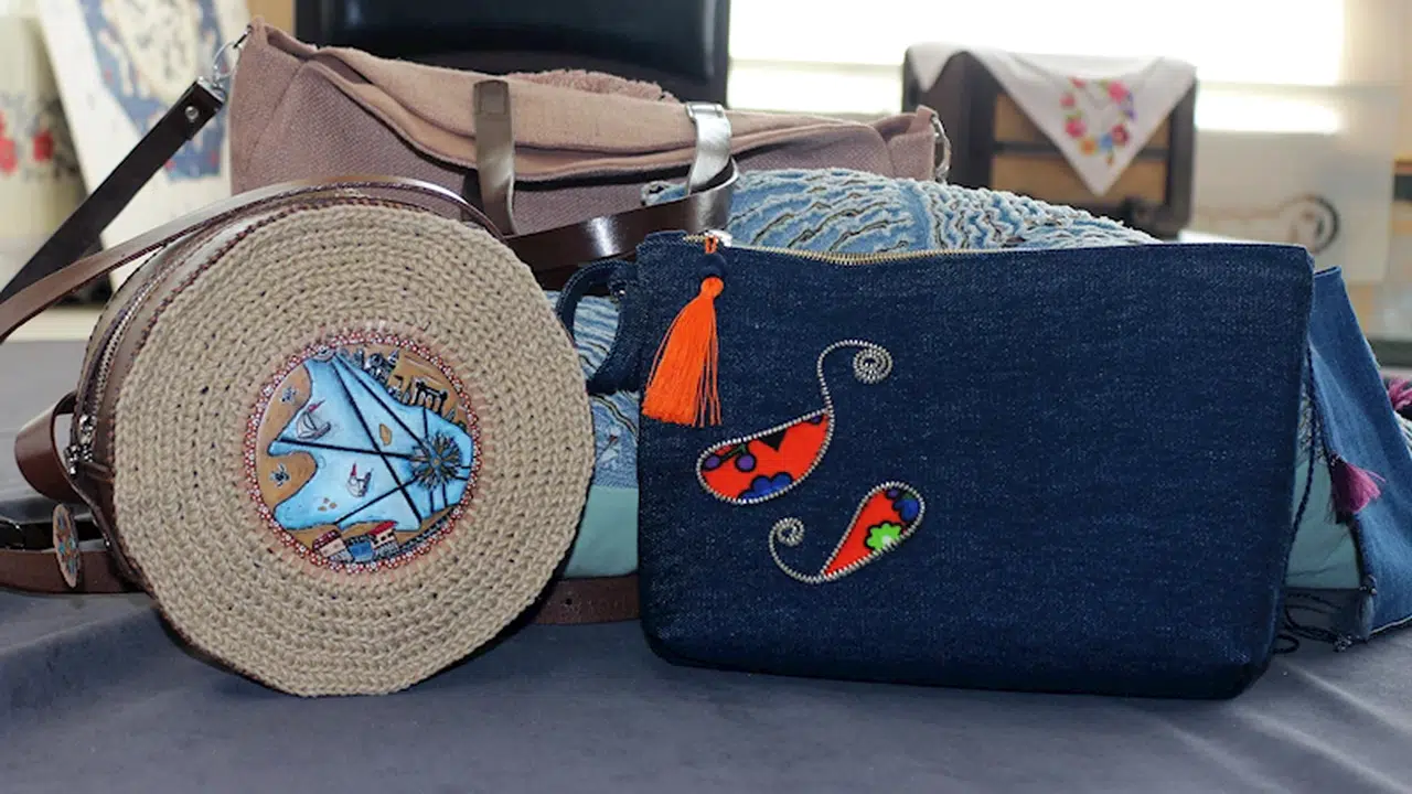 Atık kumaşlar, işlemeli çantalara dönüşüyor