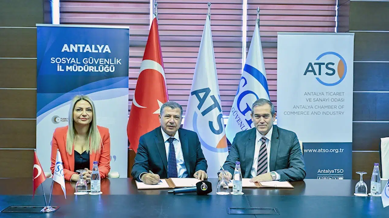 ANTALYA, (DHA)- ANTALYA Ticaret ve Sanayi Odası (ATSO) ile Sosyal Güvenlik Kurumu (SGK) Antalya İl Müdürlüğü arasında 'Rehberlik ve İş Birliği Protokolü' imzalanarak, şehrin ekonomik kalkınması, istihdamın artırılması ve üretimin desteklenmesi yolunda önemli bir adım atıldı.