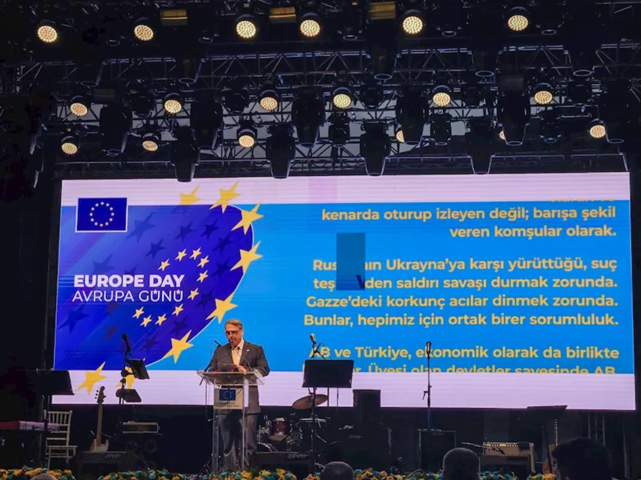 Kübra SONKAYA- Samet ÖKSÜZ/ ANKARA, (DHA)- AVRUPA Birliği'nin (AB) temellerinin atıldığı 9 Mayıs Avrupa Günü resepsiyonunda konuşan Avrupa Birliği Türkiye Delegasyonu Başkanı Büyükelçi Thomas Hans Ossowski, “Değişen ittifaklar ve artan belirsizlik dünyasında, AB ve Türkiye ortaklığını seçtik. AB ve Türkiye yan yana duruyor. AB'ye aday bir ülke olarak, bir NATO müttefiki olarak ve kenardan seyretmeyen, barışı şekillendiren komşular olarak Rusya'nın Ukrayna'ya karşı başlattığı suç niteliğindeki saldırganlık savaşı sona ermeli. Gazze'deki korkunç acı sona ermeli. Bu bizim ortak sorumluluğumuz. Ekonomik olarak AB ve Türkiye birlikte büyüyor” dedi.