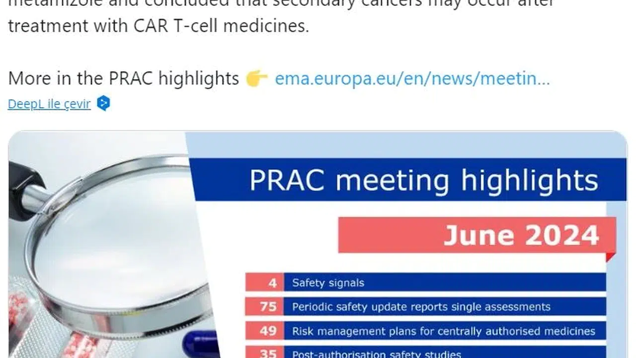 EMA’dan konuyla ilgili Cuma günü yapılan açıklamada, “EMA, bilinen agranülositoz riskini en aza indirmek için alınan önlemlerin yeterince etkili olmayabileceğine dair endişelerin ardından ağrı kesici metamizol içeren ilaçlarla ilgili bir inceleme başlattı. EMA'nın güvenlik komitesi (PRAC) AB'de farklı ruhsatlı kullanımlarında ruhsatlandırılmış tüm metamizol içeren ilaçlar için agranülositoz riskini ve mevcut risk minimizasyon önlemlerini gözden geçirecektir. Komite, agranülositozun ilaçların fayda-risk dengesi üzerindeki etkisini değerlendirecek ve AB genelinde ruhsatlarının devam ettirilmesi, değiştirilmesi, askıya alınması veya iptal edilmesi konusunda bir tavsiye yayınlayacaktır” denildi.