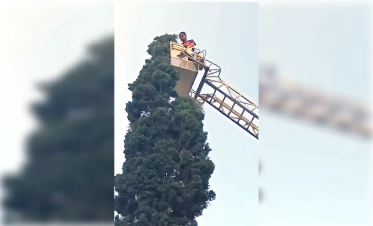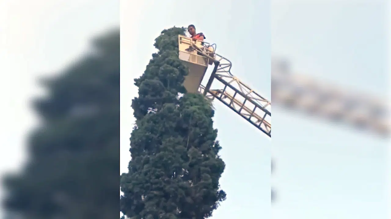 Ayağındaki iple ağaç dalına dolanan kargayı itfaiye kurtardı