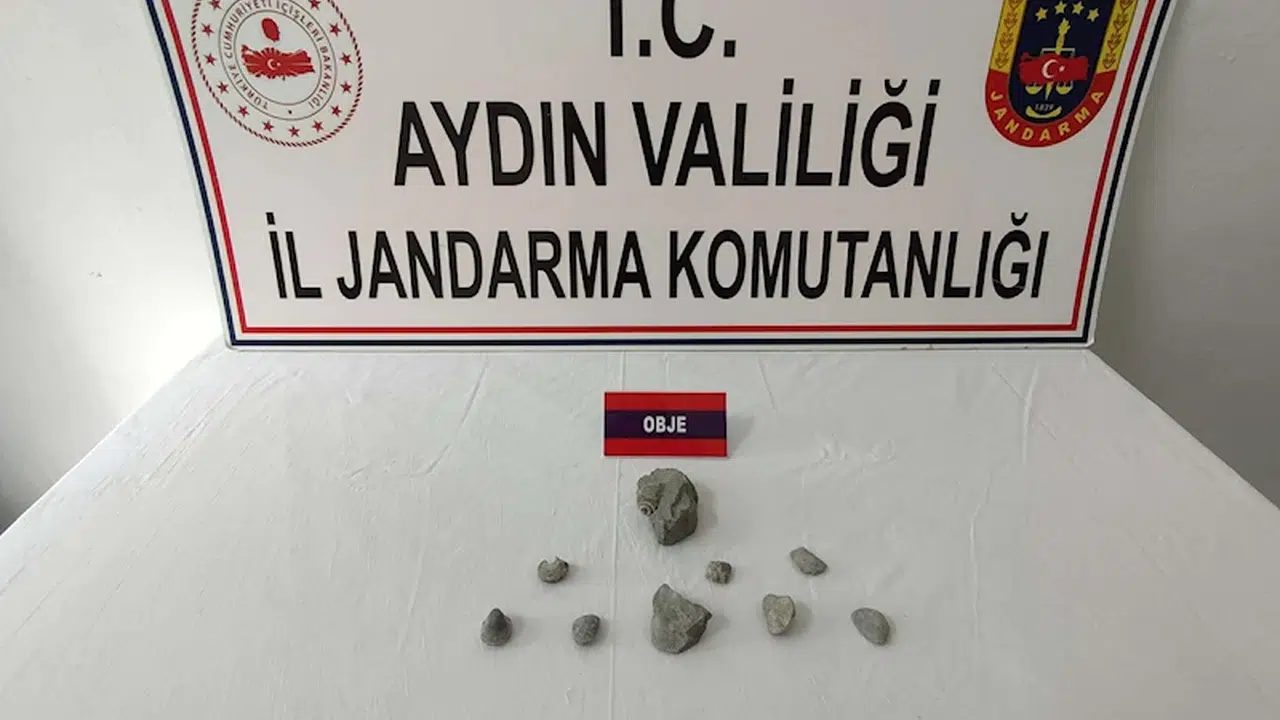Aydın İl Jandarma Komutanlığı Kaçakçılık ve Organize Suçlarla Mücadele Şube Müdürlüğü ve Kuşadası İlçe Jandarma Komutanlığı ekipleri tarihi eser kaçakçılığına yönelik sürdürdüğü çalışmalar kapsamında Güzelçamlı Mahallesi'nde salyangoz ve deniz kabuğu fosillerini 50 bin TL'ye satmak için müşteri arayışında olan şüpheli H.A.B.'yi tespit ederek takibe aldı. Yapılan takip ve araştırma sonucunda operasyon düzenleyen ekipler, H.A.B.'yi gözaltına aldı. Şüphelinin üzerinde yapılan aramada salyangoz ve deniz kabuğu fosili ele geçirildi. Aydın Müze Müdürlüğü'nden fosillerin 400 bin yıllık olduğunun değerlendirildiği belirtildi. Ele geçirilen malzemeler Müze Müdürlüğü'ne teslim edilirken, şüpheli hakkında adli işlem başlatıldı. (DHA)