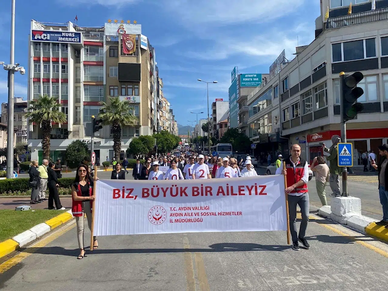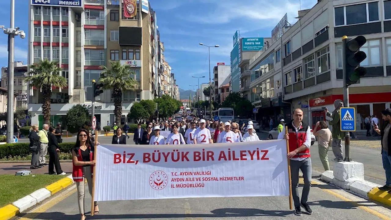 Aile ve Sosyal Hizmetler İl Müdürlüğü tarafından 'Aile Yılı' kapsamında farkındalık yürüyüşü düzenlendi. 'Ailemiz Geleceğimiz' sloganı ile düzenlenen yürüyüşe Aydın Vali Yardımcısı Bilgehan Bayar, Aile ve Sosyal Hizmetler Aydın İl Müdürü Abdullah Kömürcüoğlu, kurum müdürleri, öğrenciler, engelli bireyler ve vatandaşlar katıldı. Aydın Valiliği önünden başlayan kortej yürüyüşü Atatürk Kent Meydanı'nda son buldu. Yürüyüşün ardından katılımcılar meydanda bulunan stantları ziyaret etti. Yaşlı bakım evlerinde kalan kadınlar tarafından yapılan el emeği ürünlerin açılan stantlarda sergilendi.