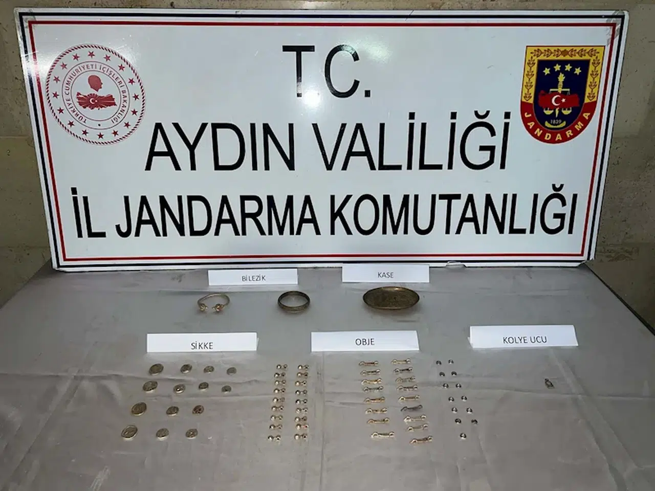 Aydın İl Jandarma Komutanlığı ve Germencik İlçe Jandarma Komutanlığı’na bağlı ekipler, istihbarat çalışmasıyla ilçede tarihi eser kaçakçılığı yapıldığı bilgisine ulaştı. Teknik ve fiziki takibin ardından dün akşam saatlerinde O.A. ve S.Y.’ye ait besihane ile seraya operasyon düzenlendi. Besihane ve seradaki aramalarda Roma ve Bizans dönemlerine ait 14 gümüş sikke, 1 kolye ucu, 2 gümüş bilezik, 1 kase ve 48 gümüş obje ele geçirildi. 2 şüpheli gözaltına alındı. Değeri toplam 3 milyon 500 bin TL olduğu belirtilen tarihi eserlerin işlemlerin ardından Aydın Arkeoloji Müze Müdürlüğü'ne teslim edileceği bildirildi. Şüphelilerin jandarmadaki işlemlerinin sürdüğü belirtildi.(DHA)