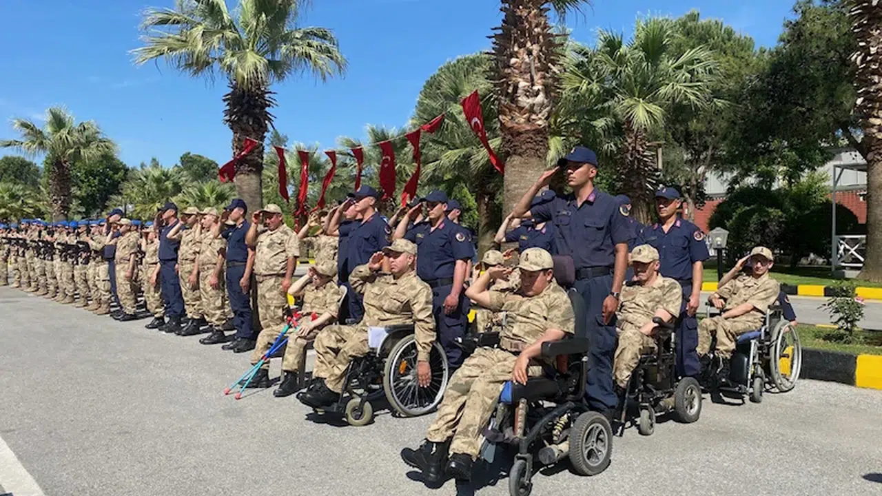 Engelli bireylerden Doğan Yıldırım, yaptığı konuşmada, temsili askerlik töreni için arkadaşları adına teşekkür etti. Mevlüt Uyanık ise 'Vurulmuş göğsünden bizim yiğitler' şiirini okudu. Askerlik heyecanı yaşayan engelli bireyler, terhis belgelerini aldıktan sonra aileleri ve jandarma personeliyle hatıra fotoğrafı çektirdi.