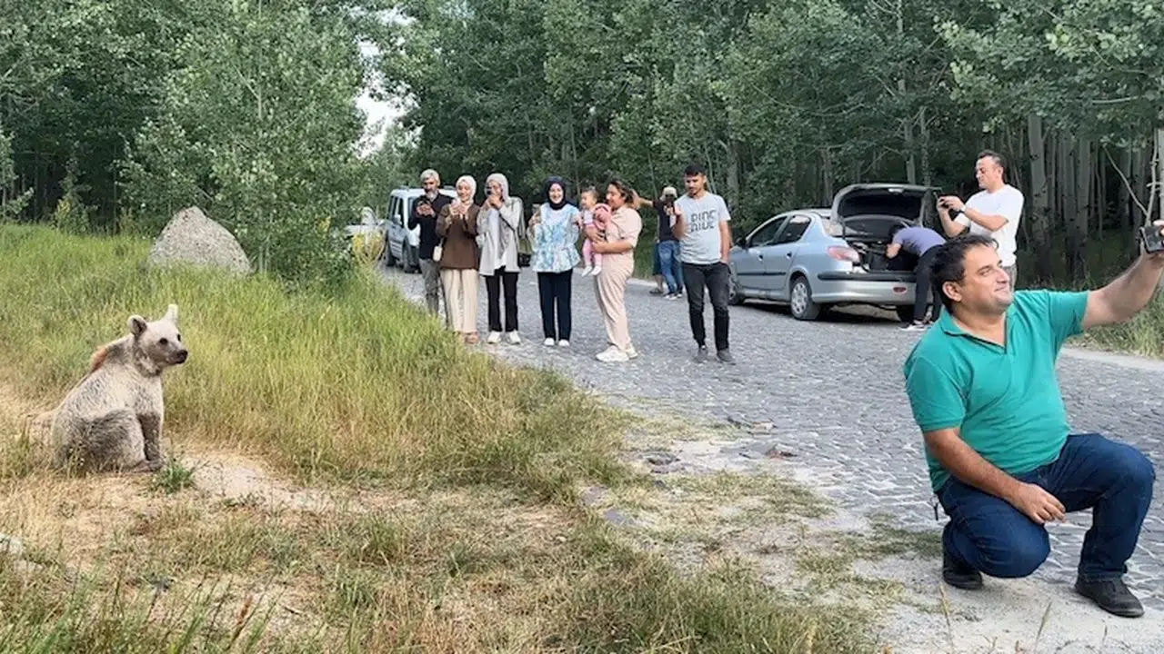 Kente 13 kilometre uzaklıkta bulunan dünyanın ikinci, Türkiye'nin ne büyük krater gölü olma özelliği taşıyan ve Avrupalı Seçkin Destinasyonlar Projesi kapsamında 'Mükemmeliyet' ödülü alan 2 bin 250 rakımlı Nemrut Krater Gölü, her yıl binlerce ziyaretçiyi ağırlıyor. Nemrut Krater Gölü'nün maskotları haline gelen yavru ve anne ayılar ise bölgeye gezmeye gelenlere sürpriz ziyaretler yapıyor. Ziyaretçiler, yakınlarına kadar gelen ayıları elleriyle besleyip, hatıra fotoğrafı çektiriyor. Bazıları da ayıları cipsle besleyip, selfie çekiyor. O anlar, çevredeki diğer ziyaretçilerin cep telefonlarıyla görüntülendi.