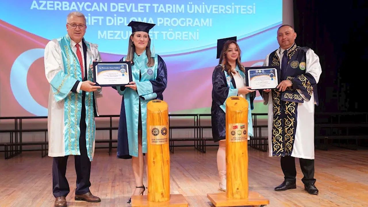 İZMİR, (DHA)-İZMİR Ege Üniversitesi (EÜ) ile Azerbaycan Devlet Tarım Üniversitesi (ADAU) arasında yürütülen çift diploma programı, ilk mezunlarını verdi. Mezuniyet töreninde konuşan EÜ Rektörü Prof. Dr. Necdet Budak, "2019 yılında Azerbaycan Devlet Tarım Üniversitesi ile Türk yükseköğretiminde bir ilk olan çift diploma programını hayata geçirdik. Bugün de öğrencilerimizi mezun ediyoruz" dedi.