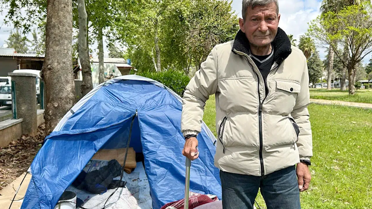 Bacağı sakatlanınca işinden oldu, parka kurduğu çadırda yaşıyor