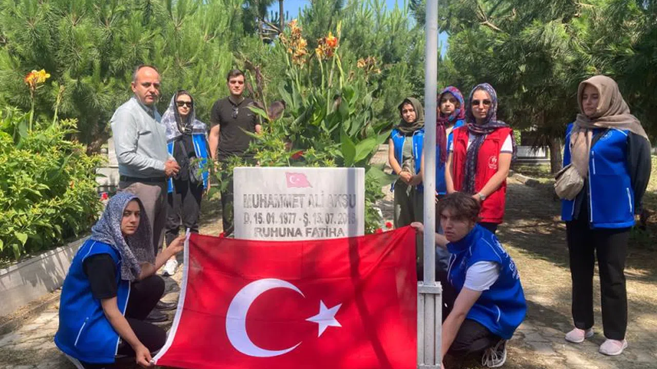 İstanbul'da 15 Temmuz darbe girişimi sırasında şehit olan Aksu'nun Doyran Mahallesi'ndeki mezarı ziyaret eden Gençlik Merkezi gönüllüleri, şehitlerin ruhu için dua etti.
