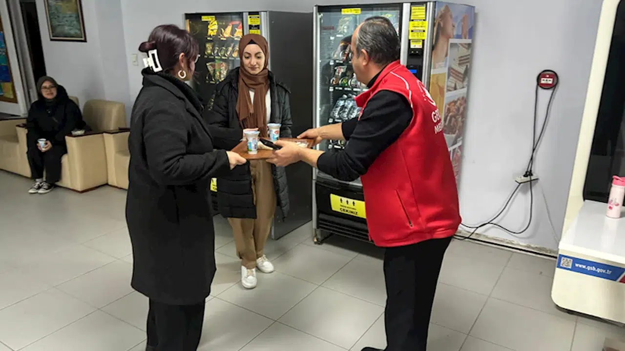 LGS, YKS ve KPSS'ye hazırlanan gençlerin yanı sıra üniversite öğrencilerinin de derslerine kütüphanelerinde çalıştığını anlatan Erdoğan, "Biz de bu güzel ortamda ders çalışan gençlere ara ara ikramlarda bulunuyoruz. Bugün kavurmalı pilav ve ayran ikramımız vardı. İkram konusunda bizlere destek olan Bafra Belediye Başkanımız Sayın Hamit Kılıç'a teşekkür ederim." ifadesini kullandı.