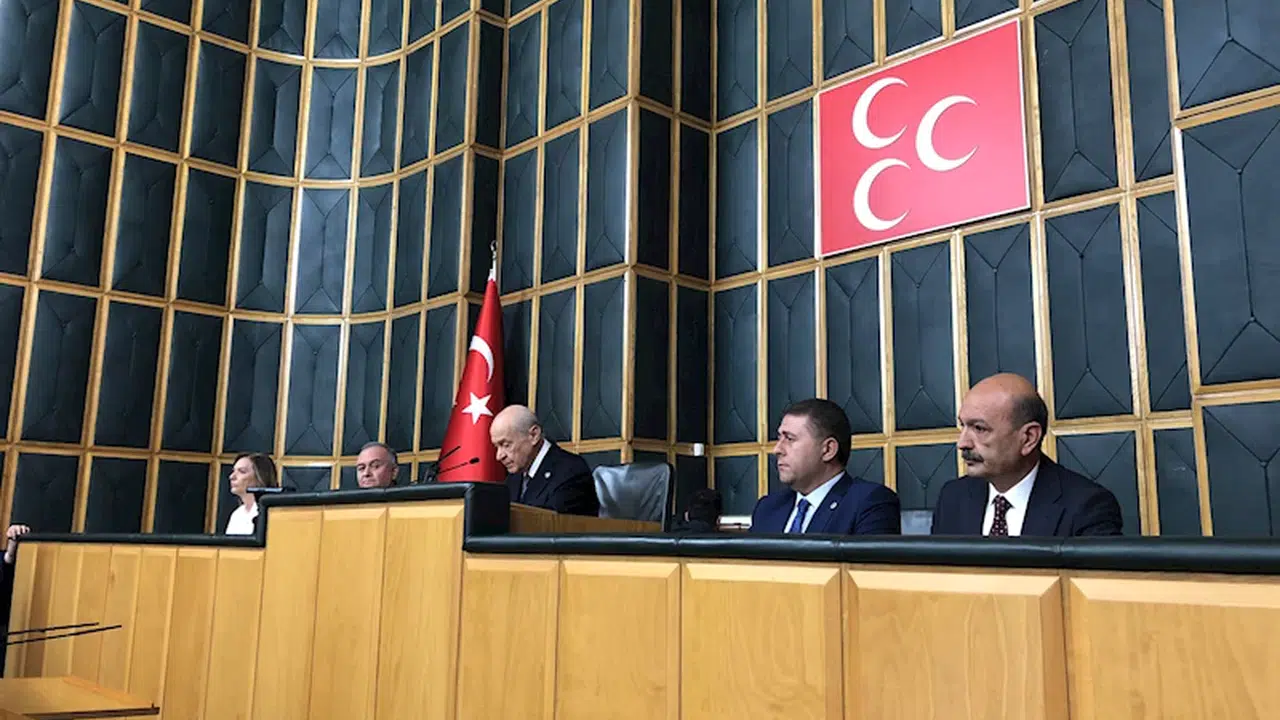 MHP lideri Bahçeli, TBMM'de partisinin grup toplantısında konuştu. Geçmişteki bütün toplantılarda ayakta konuşan Bahçeli, toplantı öncesi tansiyonunun düşmesi nedeniyle oturarak konuştu. Yaklaşık 15 dakika geç başlayan toplantıda Bahçeli, konuşma metnini de prompter yerine önündeki kağıttan okudu. Bahçeli, bugün Türkiye Büyük Millet Meclisi'nin 28'inci Yasama Dönemi 2'nci Yasama yılının son grup toplantısını yaptıklarını belirterek, "1 Temmuz 2024 tarihinden sonra, Meclis tatile giresiye kadar, değerli milletvekillerimiz genel kurul ve komisyon çalışmalarına aktif olarak iştirak edecekler, geri kalan zamanlarını da seçim çevrelerinde geçireceklerdir" dedi.