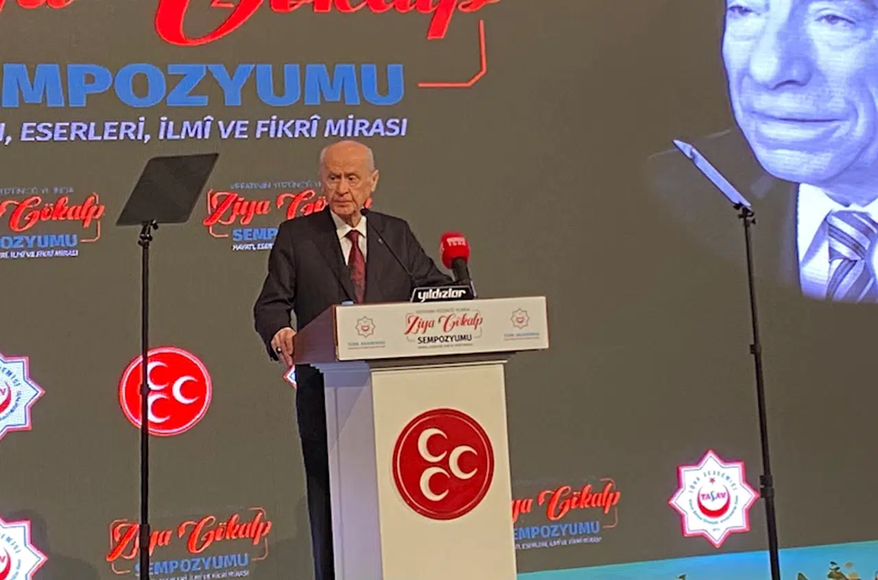 Ziya Gökalp'in, 'Kürtleri sevmeyen bir Türk varsa Türk değildir. Türkleri sevmeyen bir Kürt varsa Kürt değildir' sözlerine atıfta bulunan Bahçeli, Cumhuriyet'in 101'inci yılında her türlü tehdit ve tehlikeyi milli dayanışma ve manevi dirençle ortadan kaldıracaklarını kaydetti. Bahçeli, "Hep söyledim, yine söylüyorum; Türk’üz, Türkçüyüz, kaynağını Türk-İslam ülküsünde bulmuş Türk milliyetçileriyiz. Hiç kimse bizimle Türklüğe hizmet kulvarında, milletseverlik ve vatanseverlik yarışına girmesin. Bunlar, altından kalkamayacakları, hayat ve siyaset mazisiyle ispat edemeyecekleri söz düellolarına, siyasi şovlara, iplikçi kavgalarına, yağlı urgan ölçüştürmeye heves etmesinler. O bayağı heveslerini kursaklarında teker teker bırakır, burunlarından fitil fitil getiririz. Makam ve mevki için vicdanını satanları adam yerine bile koymayız. Yeri gelir nesilden nesle geçerek bize emanet edilen Yesevi elini uzatır, Yunus tebliğini yapar, Mevlana hoşgörüsünü gösteririz; yeri gelir yumruğumuzu tuğ diye havaya kaldırır, çetin hesabı en ağır düzeyde göresiye kadar bir daha da indirmeyiz. İndirdiğimiz zaman da sadece ve sadece hainlerin kafasının kırılacağı andır. Bu kategoriye girenler sağduyulu tavrımızı yanlışa yormasınlar. Sınır ihlali, sinir ihlali, sabır ihlali yapmaktan kötürüm emel sahiplerinin derhal ve ciddiyetle sakınması iç barış ve siyasi huzur adına temennim, hatta uyarımdır" diye konuştu.