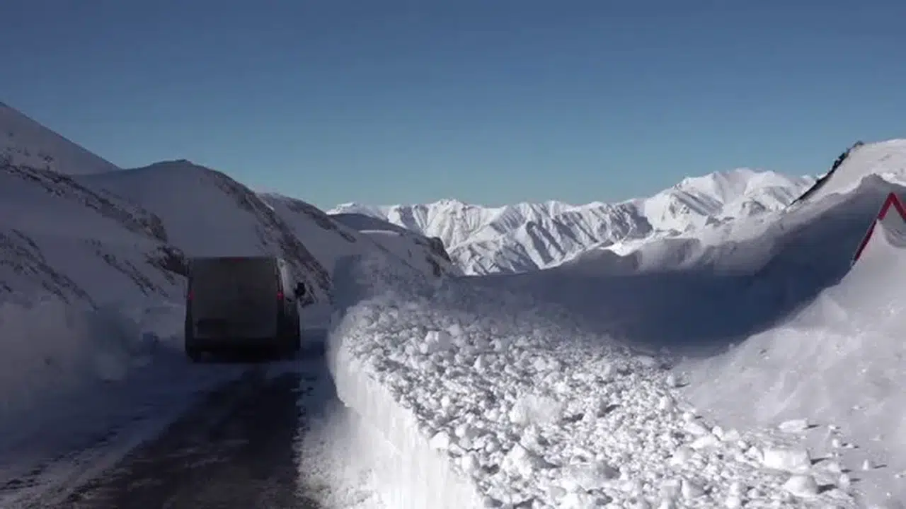 Kar kalınlığının yer yer 3 metreyi bulduğu 3 bin rakımlı Karabet Geçidi’ne ulaşan ekipler, düşen çığlar nedeniyle yolda biriken kar kütlelerini temizledi.