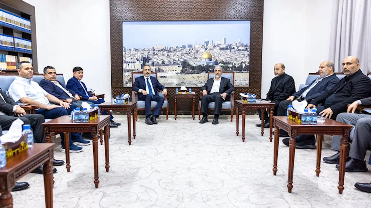 KATAR, (DHA) – Dışişleri Bakanı Hakan Fidan, Tahran'da uğradığı suikast sonucu hayatını kaybeden Hamas Siyasi Büro Şefi İsmail Haniye'nin cenaze törenine katılmak üzere gittiği Doha'da Hamas Siyasi Büro Başkan Vekili Halid Meşal'e taziyelerini iletti. Görüşmede Haniye'nin oğullarından Abdüsselam ve Hemmam'ın da bulunduğu öğrenildi.