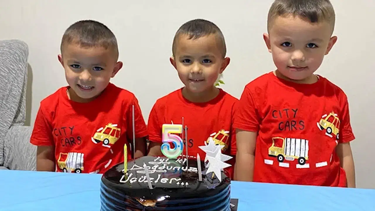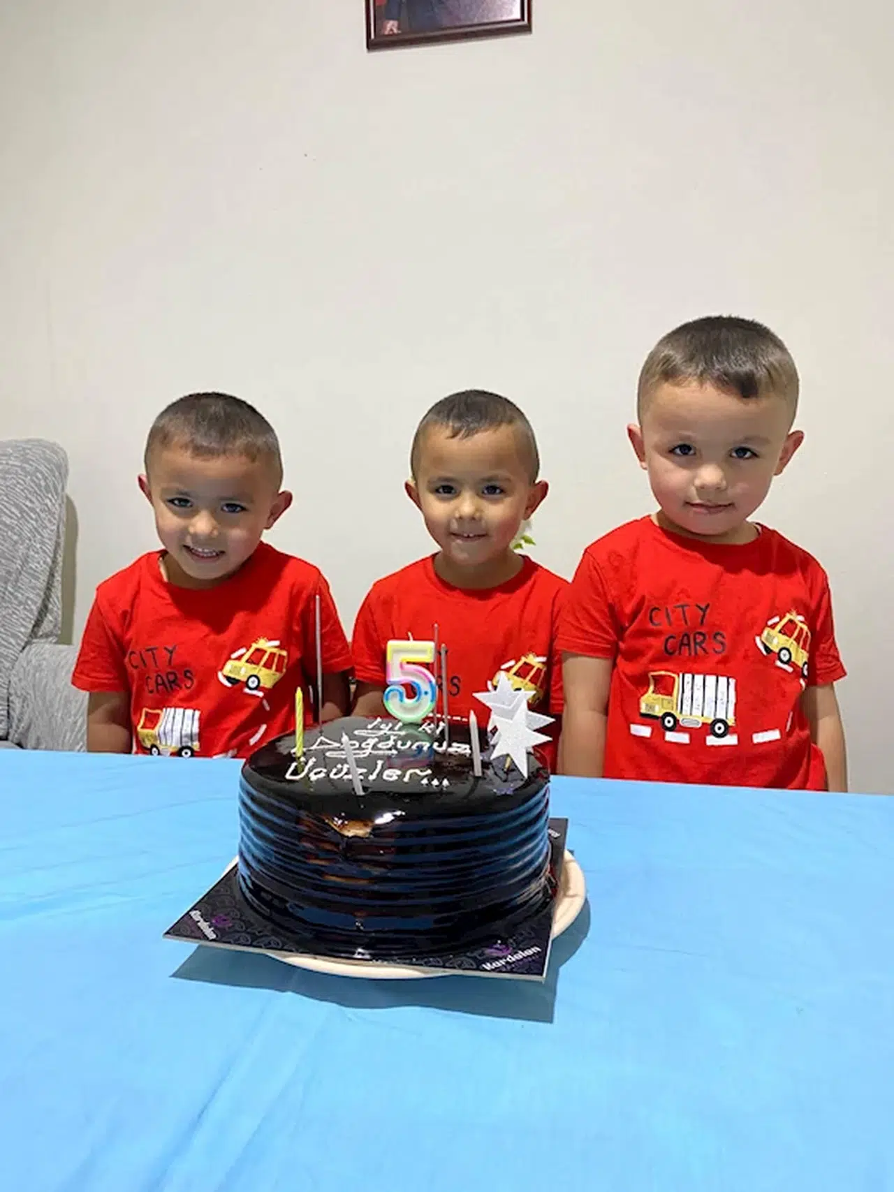 Gümüşhane'nin Kürtün ilçesinde Tarık ve Gülüşan Şen çifti, 5 yaşına giren 'Recep', 'Tayyip' ve 'Erdoğan' isimlerini verdiği üçüz çocukları için doğum günü kutlaması yaptı. Üçüzler, üzerine ‘İyi ki doğdunuz üçüzler’ yazılı pastaya dikilen mumları üfledi. Baba Tarık Şen, fotoğraf karesiyle ölümsüzleştirdiği bu anları sosyal medya hesabından “Üçüzlerimiz 5 yaşına girdi. Rabb'im sağlık, sıhhat versin. Devlete, millete hayırlı evlat olmayı nasip eylesin” notuyla paylaştı. (DHA)