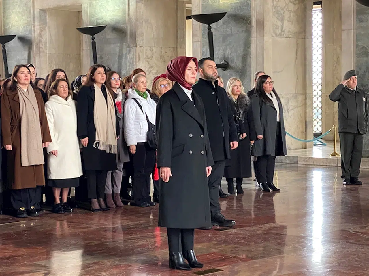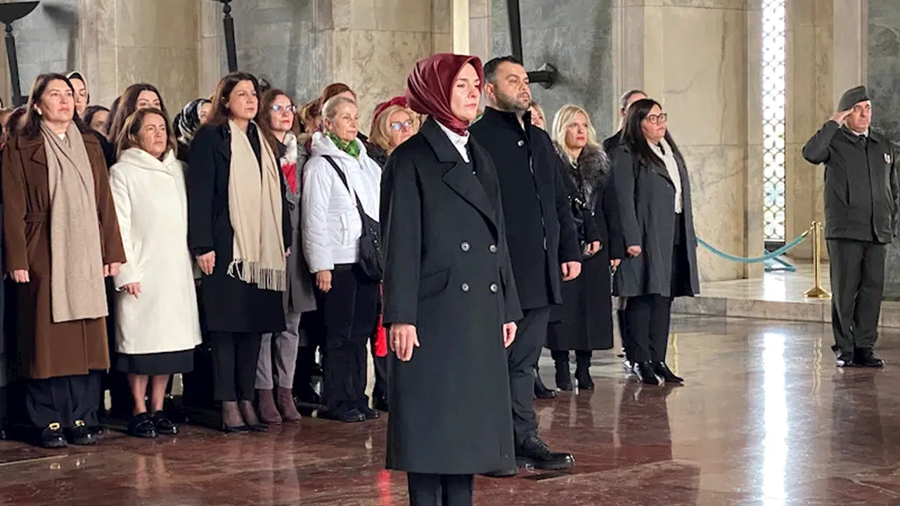 Bakan Göktaş'ın başkanlığında kadın milletvekilleri, rektörler, akademisyenler, muhtarlar, sivil toplum kuruluşlarının temsilcileri ve bakanlık çalışanlarından oluşan heyet, Aslanlı Yol'dan yürüyüp, Atatürk'ün mozolesine geldi. Göktaş'ın mozoleye çelenk bırakmasının ardından heyet, saygı duruşunda bulundu. Tören daha sonra Misak-ı Milli Kulesi'nde devam etti.