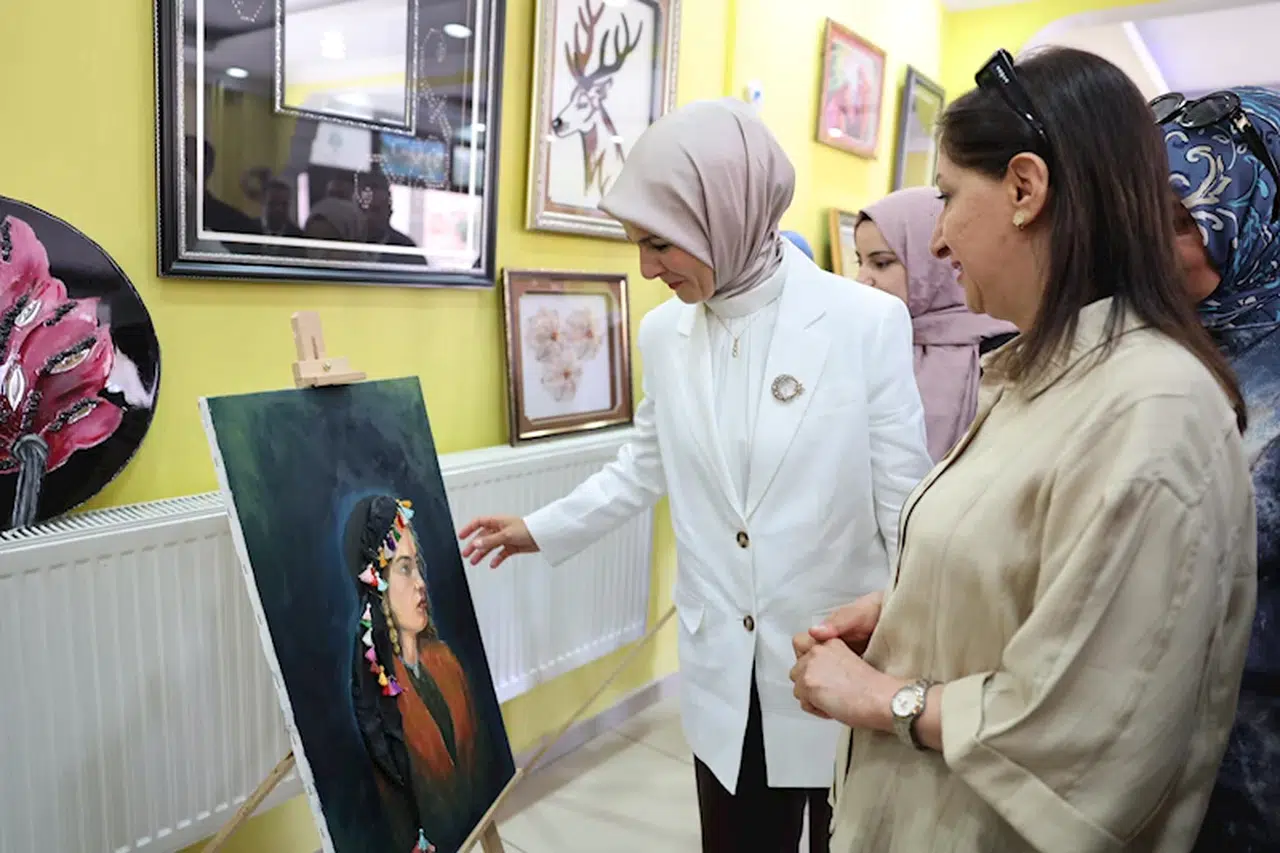 Bakan Göktaş, Hakkari programı kapsamında Aile Destek Merkezi'ni (ADEM) ziyaret etti. Merkezin faaliyetlerine ilişkin bilgi alan Göktaş, kadın kursiyerlerle bir araya geldi. Ahşap atölyesini gezen, buradaki kadınlarla sohbet eden Bakan Göktaş, bir yağlı boya resminin son bölümünü tamamladı. Ardından el nakışı kursundaki kadınlarla bir araya gelen Göktaş, kursiyerlerin yaptıkları ürünleri yakından inceledi.