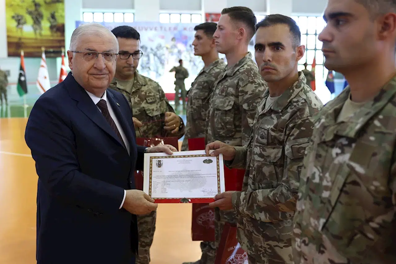 Milli Savunma Bakanı Yaşar Güler, Genelkurmay Başkanı Orgeneral Metin Gürak ile Özel Kuvvetler Komutanlığı'ndaki İhtisas Kursu Mezuniyet Töreni'ne katıldı. Bakan Güler ve Orgeneral Gürak, eğitimi başarıyla tamamlayıp dereceye giren Bordo Berelilere mezuniyet belgelerini verdi, brövelerini taktı.