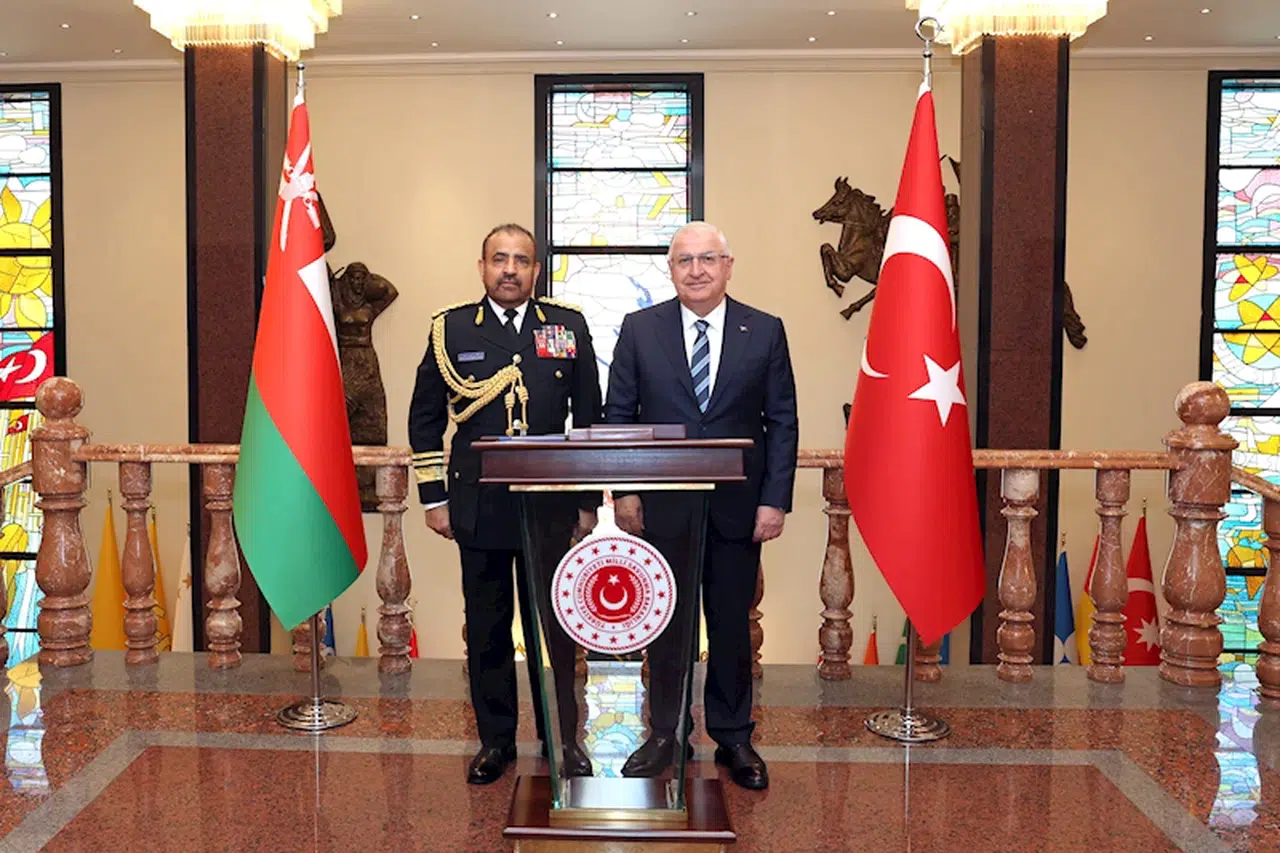 Bakan Güler, Genelkurmay Başkanı Orgeneral Metin Gürak’ın resmi davetlisi olarak Ankara’ya gelen Umman Sultanlığı Genelkurmay Başkanı Koramiral Abdullah Bin Khamis Bin Abdullah Alraısı’yı kabul etti. Kabulde Genelkurmay Başkanı Orgeneral Metin Gürak da yer aldı. (DHA)