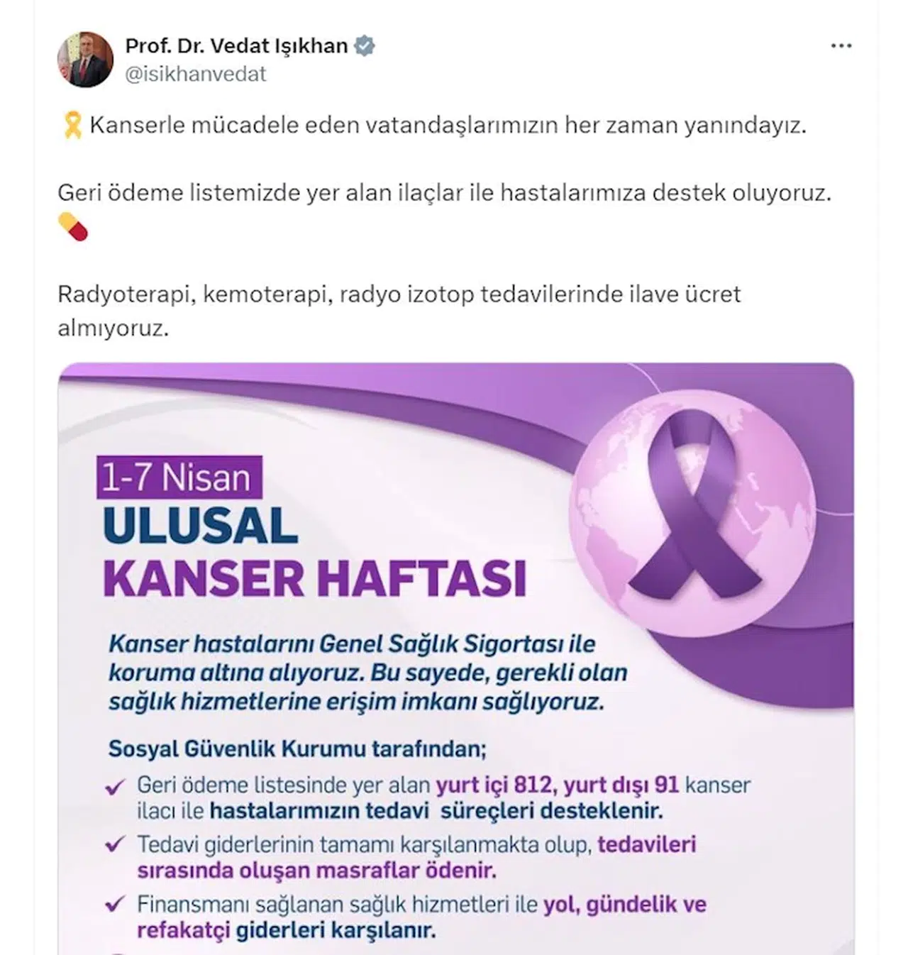 Bakan Işıkhan: Kanser tedavilerinde ilave ücret almıyoruz
