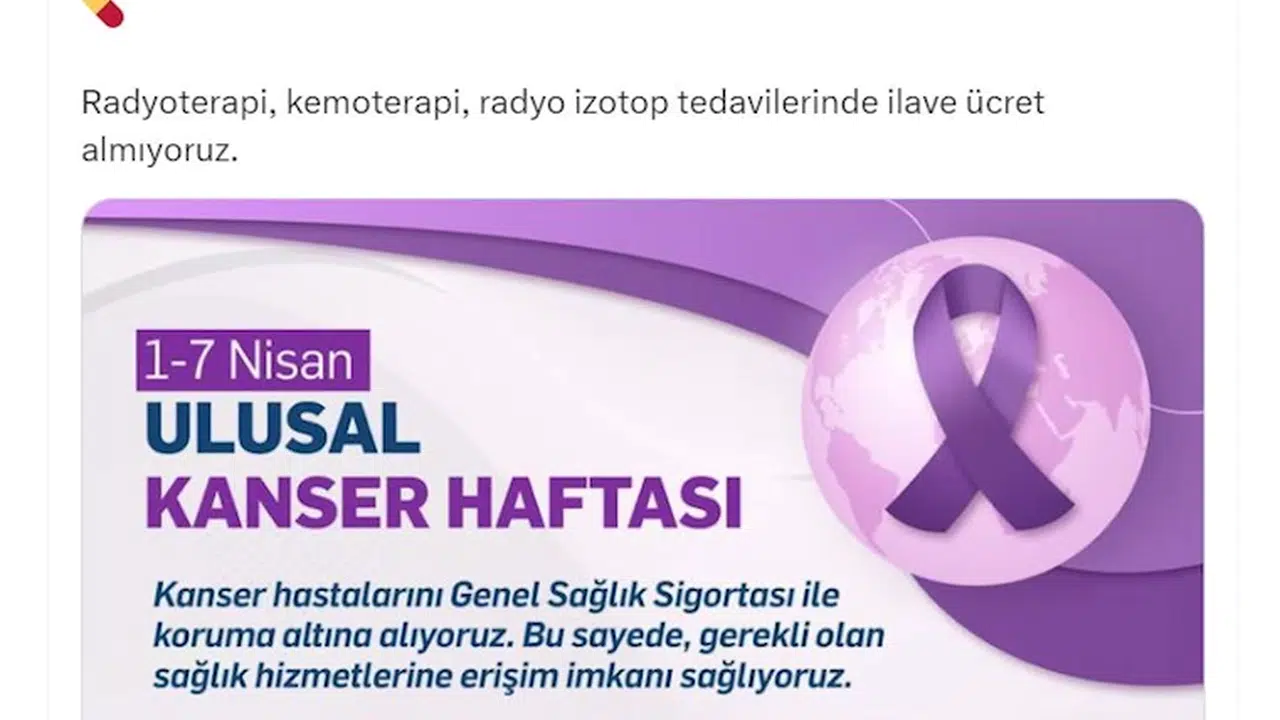 Bakan Işıkhan, '1-7 Nisan Ulusal Kanser Haftası' nedeniyle sosyal medya hesabından açıklama yaptı. Işıkhan, "Kanserle mücadele eden vatandaşlarımızın her zaman yanındayız. Geri ödeme listemizde yer alan ilaçlar ile hastalarımıza destek oluyoruz. Radyoterapi, kemoterapi, radyo izotop tedavilerinde ilave ücret almıyoruz" dedi. Kanser hastalarını Genel Sağlık Sigortası ile koruma altına aldıklarını hatırlatan Işıkhan, "Bu sayede, gerekli olan sağlık hizmetlerine erişim imkanı sağlıyoruz. Sosyal Güvenlik Kurumu tarafından; geri ödeme listesinde yer alan yurt içi 812, yurt dışı 91 kanser ilacı ile hastalarımızın tedavi süreçleri desteklenir. Tedavi giderlerinin tamamı karşılanmakta olup, tedavileri sırasında oluşan masraflar ödenir. Finansmanı sağlanan sağlık hizmetleri ile yol, gündelik ve refakatçi giderleri karşılanır. Kanser tedavisinden (radyoterapi, kemoterapi, radyo izotop tedavileri) ilave ücret alınmaz. Sigortalının hastalık hallerine bağlı olarak ortaya çıkan iş göremezlik süresince, günlük geçici iş göremezlik ödeneği ödenir. Maluliyet talep tarihinden önceki bir yıl içinde tanı almak kaydıyla talebe istinaden düzenlenmiş sağlık kurulu raporu tarihinden itibaren 18 ay süresince malul kabul edilir" açıklamasında bulundu. (DHA)