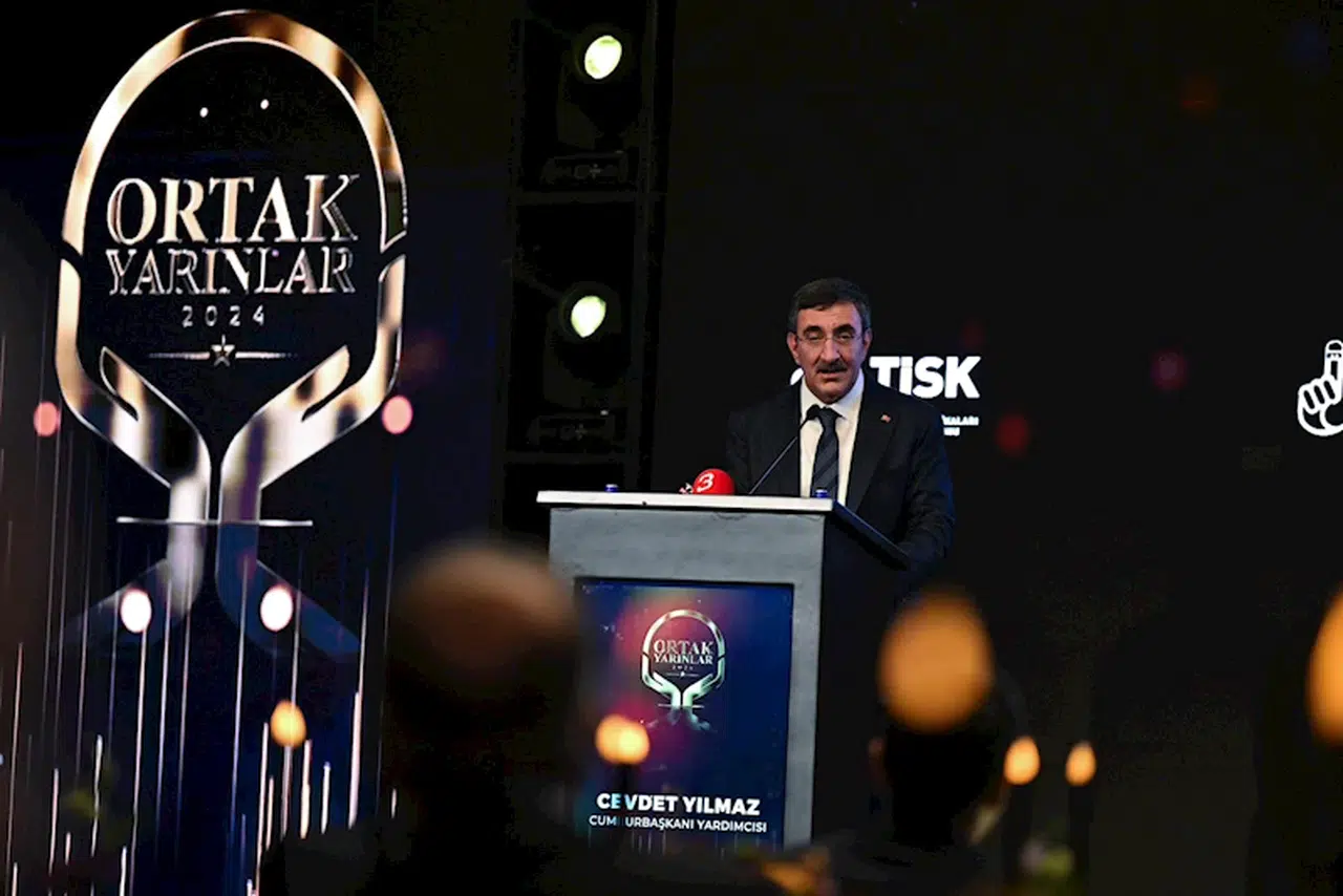 Türkiye İşveren Sendikaları Konfederasyonu (TİSK) tarafından bir otelde düzenlenen 'Çalışma Hayatının Geleceği' temalı 'Ortak Yarınlar Ödül Töreni'nde konuşan Cumhurbaşkanı Yardımcısı Cevdet Yılmaz, TİSK'in kurulduğu günden bu yana Türkiye'nin ekonomisine ve çalışma hayatına katkı sağlamanın ötesinde, kurumsal sosyal sorumluluk alanında da projelere öncülük ettiğini belirterek, "Her yıl düzenlenen bu anlamlı organizasyonun, dijitalleşmeden yeşil dönüşüme, kadınların ve gençlerin güçlendirilmesinden sosyal uyuma kadar geniş bir yelpazede yenilikçi projeleri desteklemesi takdire şayandır. Bu yıl ana tema olarak 'Çalışma Hayatının Geleceği' konusunun belirlenmiş olmasını son derece anlamlı buluyorum. Dijital dönüşümden yeşil ekonomiye geçişe ve demografik değişimlere kadar pek çok dinamik, iş hayatının yarınlarını şekillendirmede rol oynamaktadır. Bu süreçte, iş dünyasının tüm taraflarının bir araya gelerek ortak bir vizyonla hareket etmesinde fayda görüyorum" dedi.