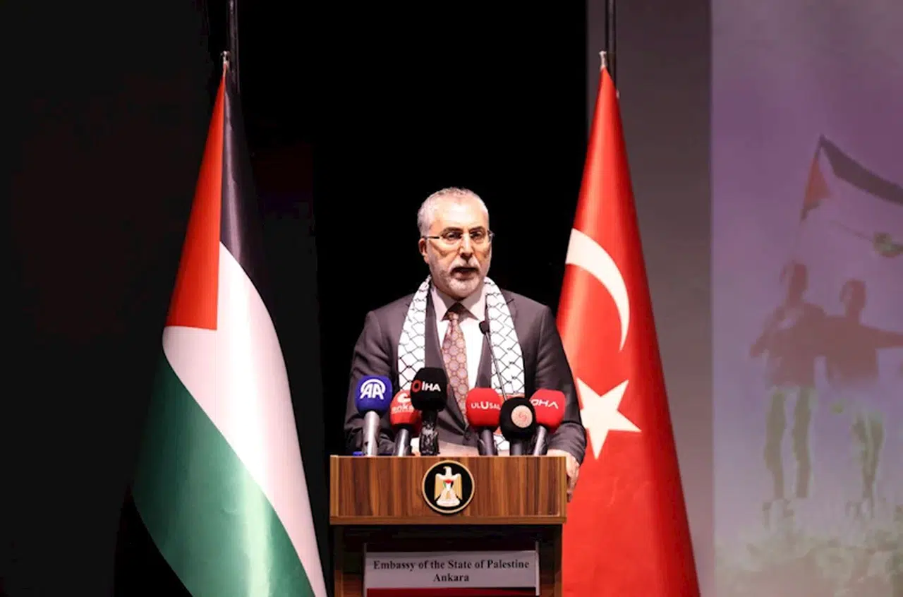 Filistin Büyükelçiliği tarafından ‘29 Kasım Filistin Halkıyla Uluslararası Dayanışma Günü’ programı düzenledi. Yaşar Kemal Kültür Merkezi'nde düzenlenen programa Çalışma ve Sosyal Güvenlik Bakanı Vedat Işıkhan’ın yanı sıra HÜDA PAR Genel Başkanı Zekeriya Yapıcıoğlu, Filistin Büyükelçisi Faed Hatid Abd Mustafa, BM Mukim Koordinatörü Babatunde Ahonsi, Arap Devletleri Ligi Misyonu Büyükelçisi Abdulhamed Hamza ve çok sayıda davetli katıldı. İki ülkenin marşlarının okunmasıyla başlayan programda BM Mukim Koordinatörü Babatunde Ahonsi’nin konuşması sırasında, “Hiçbir şey Hamas'ın 7 Ekim'deki terör saldırısını haklı gösteremez” demesi üzerine HÜDA PAR Genel Başkanı Zekeriya Yapıcıoğlu ve programa katılan çok sayıda davetli salonu terk etti. Ahonsi’nin yerine oturmasın ardından programa davetli olarak katılan Filistinli öğrenci Jeelan aburubm, Ahonsi’den özür dilemesini istedi ancak karşılık alamayınca yakasından tutarak tepki gösterdi.