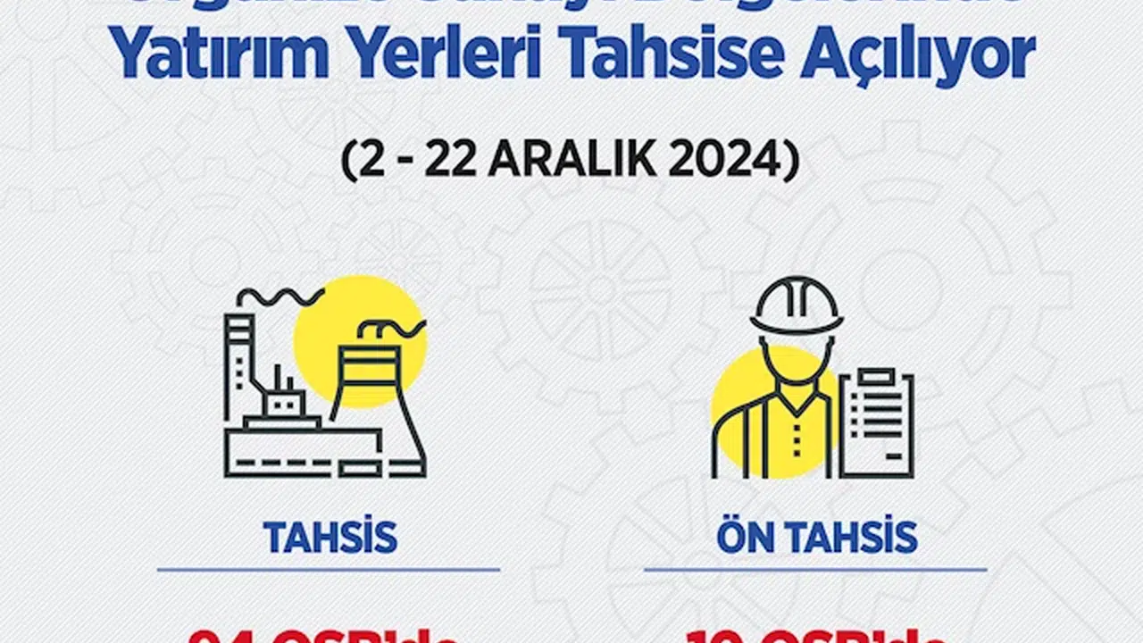 "Bu ay çıktığımız üçüncü ilanla, 94 OSB’de 16,2 milyon metrekare büyüklüğündeki toplam 1115 yatırım yerini tahsis başvurularına, 10 OSB’de 2,4 milyon metrekare alanı ön tahsis başvurularına açtık. Yatırımların hızlanması için çalışmaya devam edeceğiz." (DHA)
