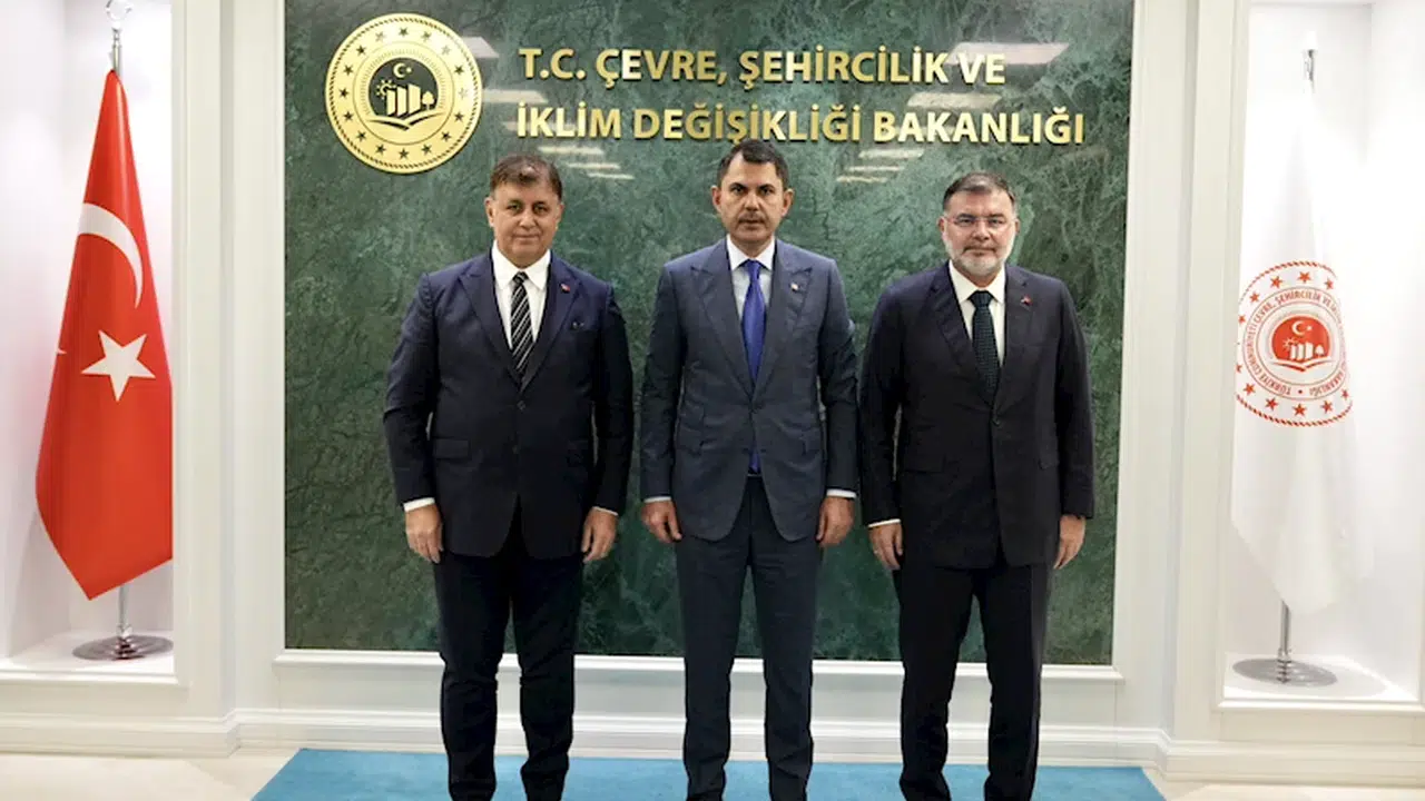 ANKARA, (DHA)- ÇEVRE, Şehircilik ve İklim Değişikliği Bakanı Murat Kurum, İzmir Büyükşehir Belediye Başkanı Cemil Tugay ve AK Parti İzmir İl Başkanı Bilal Saygılı’yı bakanlıkta kabul etti.