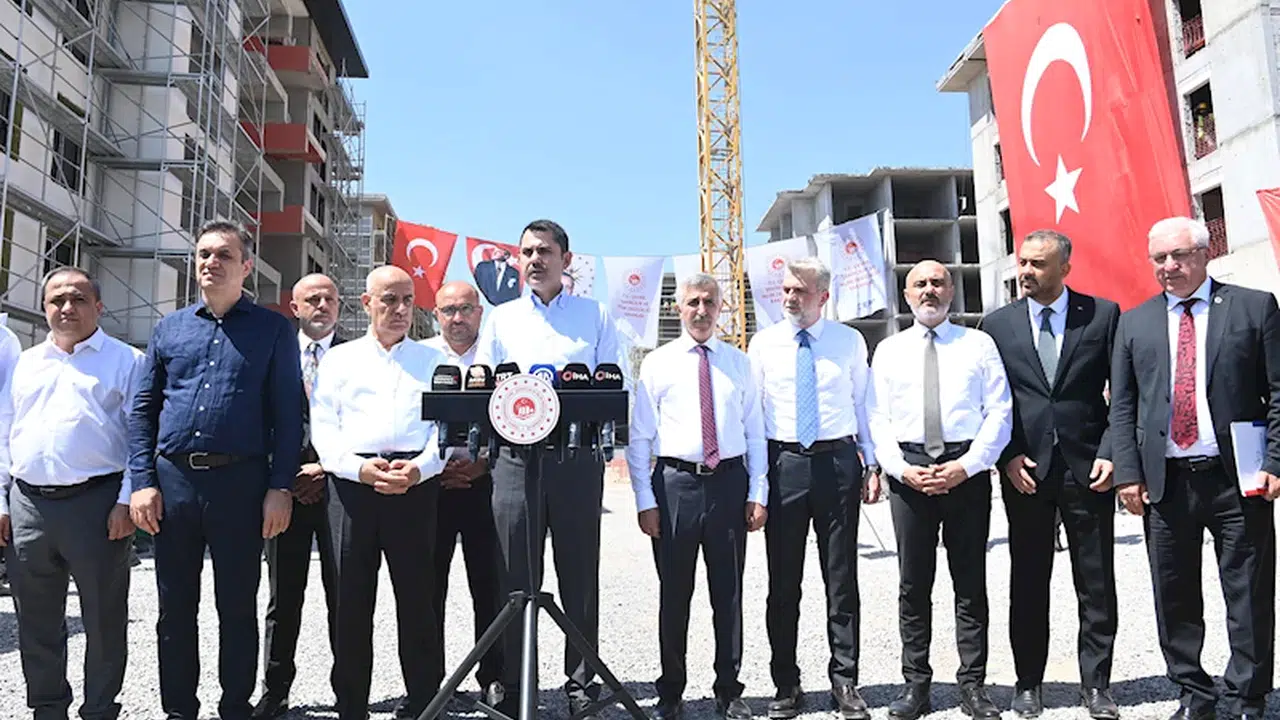 Bakan Kurum, "Bugün bu anlayışla 11 ilimizde 302 bin yeni yuvamızın, iş yerimizin inşasını başlattık ve bu kapsamda 76 bin konutumuzu da vatandaşlarımıza teslim ettik. İnşallah Eylül ayında Sayın Cumhurbaşkanımızın da teşrifleriyle birlikte yeni kuramızı çekeceğiz ve bu sayıyı 100 bine ulaştıracağız. Yıl sonunda da hedefimiz en 200 bin vatandaşımızı yapmış olduğumuz konutlarda oturmasını güven içerisinde, huzur içerisinde yaşamasını sağlamak olacak. Ve hedefimiz 2025 yılına geldiğinde inşallah 11 ilimizde tüm depremzede kardeşlerimizi sağlam, güvenli konutlarına yerleştirmek olacak. Tabii şehirlerimiz yenilenecek, güçlenecek ve bu bölgede ülkemizin ekonomisi için, istihdamı için çalışan, ter döken 14 milyon insanımızı refaha kavuşturacak adımları da hep birlikte atmış olacağız. Kahramanmaraş'ımızda şu ana kadar yapmış olduğumuz çalışmalar çerçevesinde 17 bin 592 yuvamızı, iş yerimizi hızlı bir şekilde yapıp vatandaşlarımızın hizmetine sunduk ve bugün halen merkezde, Elbistan'da, Afşin'de, Onikişubat, Dulkadiroğlu, Çağlayancerit, Pazarcık ve Türkoğlu'nda toplam 45 bin 347 konut ve iş yerinin yapımını da aynı anlayışla devam ediyoruz. Ve buradan bir müjdeyi de paylaşmak istiyorum. İnşallah yıl sonuna kadar teslim ettiğimiz 17 bin 592 yuvaya 21 bin 544 yeni konutu, iş yerini daha ekleyip, yıl sonuna kadar Kahramanmaraş merkez ve ilçelerde teslimini gerçekleştireceğiz. Bu kapsamda inşallah teslim sayımızı, burada 39 bine yıl sonuna ulaştırmış olacağız" dedi.