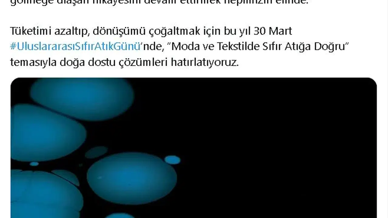 Bakan Kurum, sosyal medya hesabından yaptığı paylaşımda, “Atmak yerine iyileştirebiliriz. Toprağın en saf armağanı olan pamuğun iplikten kumaşa, kumaştan bir gömleğe ulaşan hikayesini devam ettirmek hepimizin elinde. Tüketimi azaltıp, dönüşümü çoğaltmak için bu yıl 30 Mart Uluslararası Sıfır Atık Günü'nde, 'Moda ve Tekstilde Sıfır Atığa Doğru' temasıyla doğa dostu çözümleri hatırlatıyoruz” ifadelerini kullandı.
