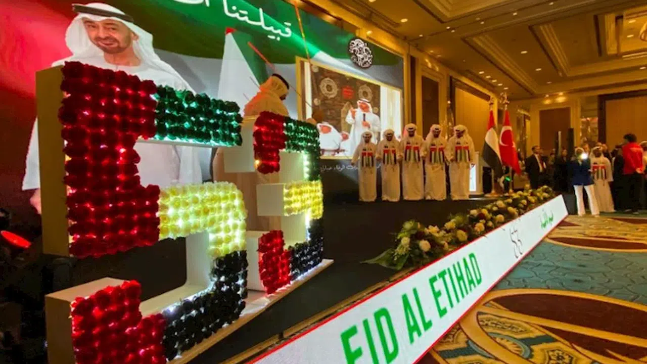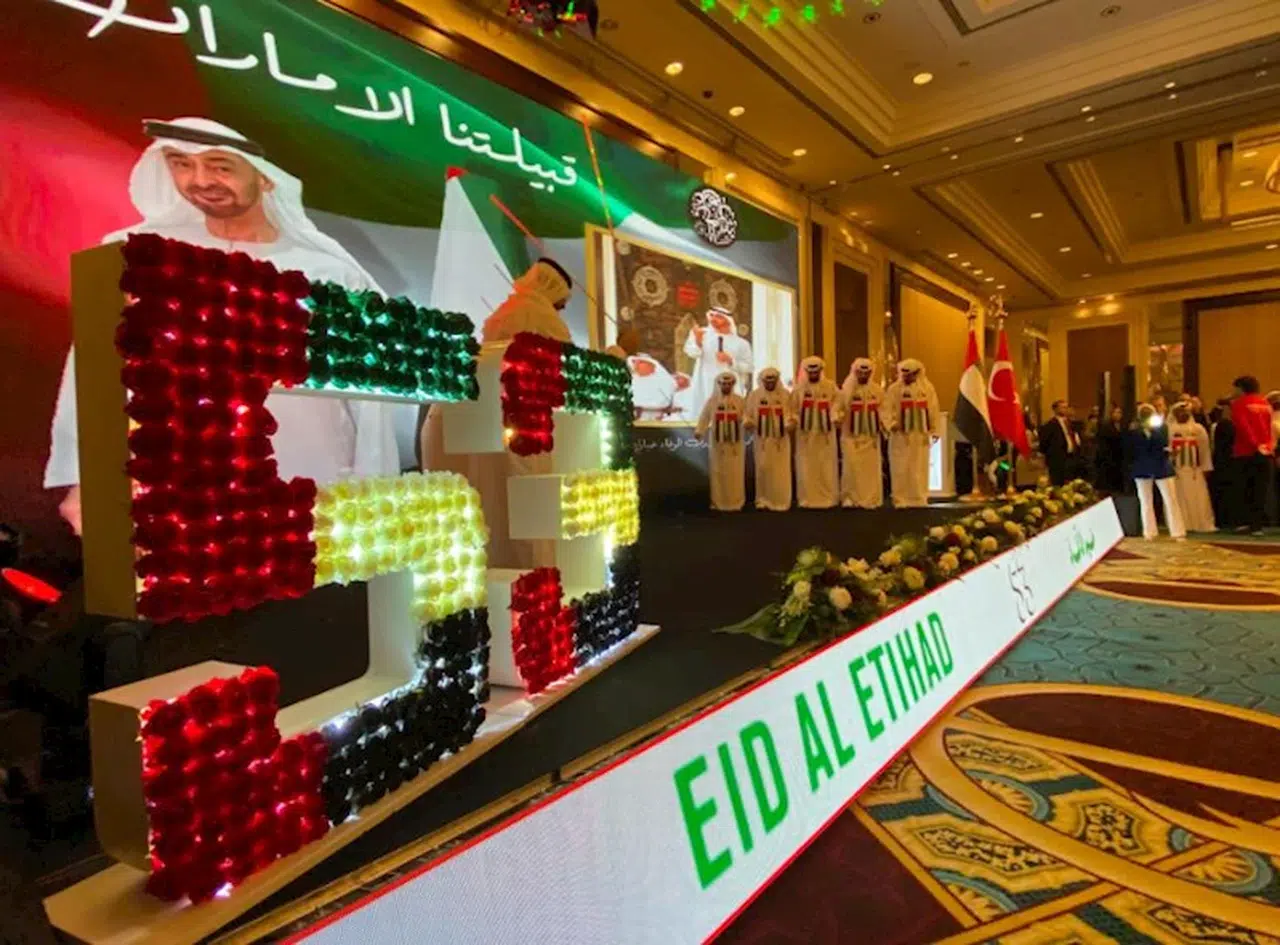 Birleşik Arap Emirlikleri'nin (BAE) 53'üncü Milli Günü dolayısıyla Ankara'da resepsiyon düzenlendi. İki ülkenin marşlarının okunmasıyla başlayan programa, BAE'nin Ankara Büyükelçisi Said Sani ez-Zahiri’nin yanı sıra Hazine ve Maliye Bakanı Mehmet Şimşek, TBMM Sanayi, Ticaret, Enerji, Tabii Kaynaklar, Bilgi ve Teknoloji Komisyonu Başkanı ve AK Parti Bursa Milletvekili Mustafa Varank katıldı. Resepsiyonda konuşan, BAE'nin Ankara Büyükelçisi Said Sani ez-Zahiri, Türkiye ve BAE arasındaki ilişkilerin, dikkat çekici bir şekilde geliştiğini belirterek, “Ekonomik ve ticari ilişkilerin çeşitlendirilmesi ve büyütülmesini, ayrıca Kapsamlı Ekonomik Ortaklık Anlaşması (CEPA) hedeflerinin gerçekleştirilmesini desteklemek için çalışıyoruz. Bu hedeflerin en önemlilerinden birisi, önümüzdeki yıllarda petrol dışı ticaret hacmini yıllık 40 milyar ABD dolarına çıkarmaktır. BAE-Türkiye ilişkilerindeki ilerleme ve ekonomik entegrasyonun geleceğine duyulan iyimserlik, 2023 yılında petrol dışı ticaret hacmini 20 milyar ABD dolarına çıkararak 2022'ye kıyasla yüzde 103,7 oranında bir artış sağladı. Bu başarı, Türkiye'yi BAE'nin en hızlı büyüyen ticaret ortağı haline getirirken, Türkiye'nin BAE'nin dünya çapındaki en büyük altıncı ticaret ortağı olmasını ve ülkenin toplam dış ticaret hacminin yüzde 5,1'inden fazlasını oluşturmasını sağladı. Bu başarılar, Birleşik Arap Emirlikleri’nin, vizyon sahibi liderliğinin, inovasyon, hoşgörü ve sürdürülebilirliği bir araya getirerek insana ve insanlığa hizmet eden küresel bir lider ülke inşa etme hedefini somutlaştırmaktadır” ifadelerini kullandı.