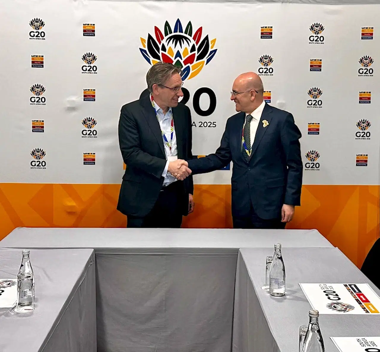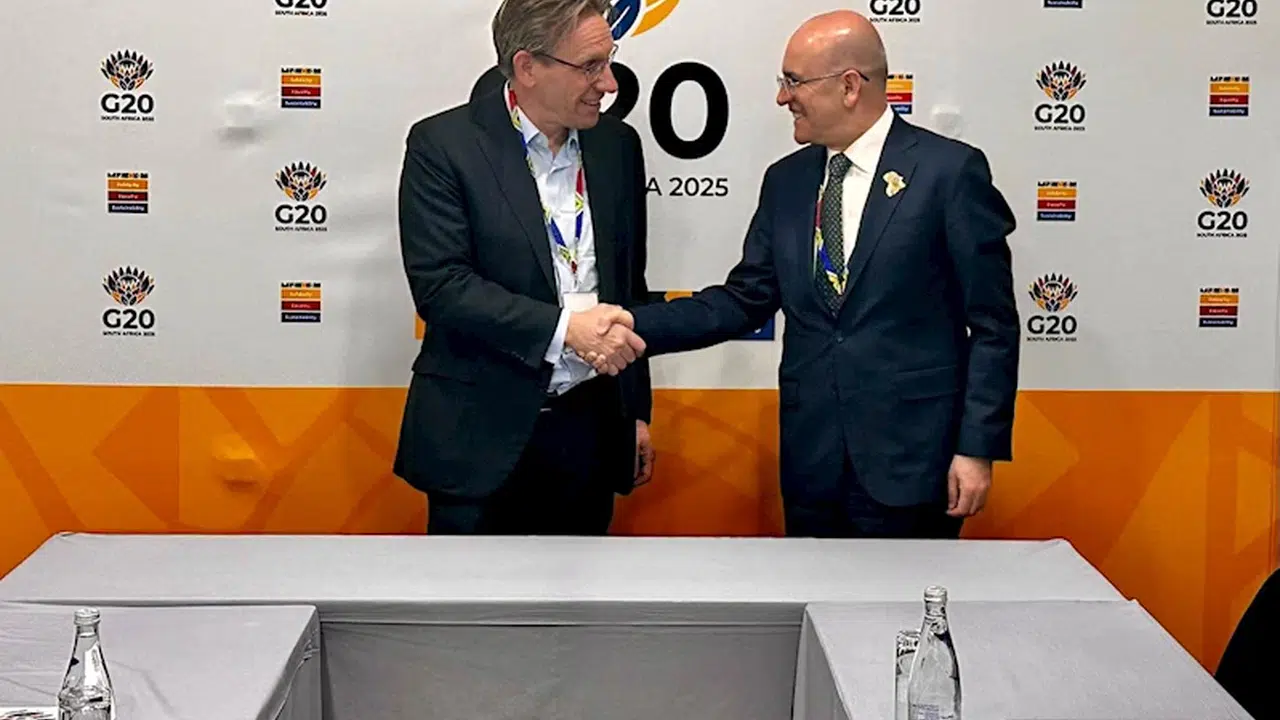 Hazine ve Maliye Bakanı Mehmet Şimşek, Güney Afrika’nın Cape Town şehrinde düzenlenen G20 toplantıları kapsamında Almanya Maliye Bakanı Jörg Kukies ile bir araya geldi. Bakanlıktan yapılan açıklamaya göre, görüşmede, ikili ilişkiler, Türkiye-AB ilişkileri ve bölgesel entegrasyonun önemi ele alındı.