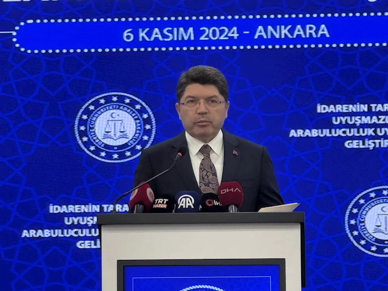 Adalet Bakanı Yılmaz Tunç, Dikmen Hakim Evi'nde düzenlenen 'İdarelerin Taraf Olduğu Uyuşmazlıklarda Arabuluculuk Uygulamalarının Geliştirilmesi Sempozyumu'nda konuştu. Bakan Tunç, dünyada da son yıllarda hukuk uyuşmazlıklarında alternatif çözüm yöntemi olarak ara buluculuk sisteminin geliştirilmesiyle ilgili önemli ilerlemeler olduğunu söyleyerek, "Ve bu anlamda biz mevzuatımıza, hukuk sistemimize, hukuk uyuşmazlıklarında ya da ceza uyuşmazlıklarında alternatif çözüm yöntemlerinin sisteme dahil edilmesi noktasında geriye de kaldık, bu noktada geç de kaldık. Geç kalmış olmak demek, burada özellikle bu konuda daha çabuk, daha hızlı davranmamızı gerektirecek çalışmaları da geriye bırakmamızı gerektirmez" dedi.