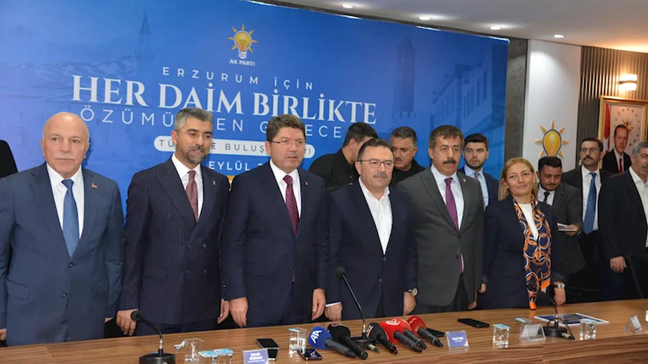 Adalet Bakanı Yılmaz Tunç, Türkiye Buluşmaları toplantısına katılmak üzere Erzurum'a geldi. Gün boyu sürecek programı öncesi AK Parti İl Başkanlığı'nı ziyaret eden Bakan Tunç, İl Başkanı İbrahim Küçükoğlu'ndan kentle ilgili brifing aldı ve talepleri dinledi. AK Parti milletvekilleri ve partililerin de katıldığı toplantıda konuşan Bakan Tunç, 'Türkiye Buluşmaları' programının milletvekilleri ve teşkilat üyeleriyle gerçekleştirildiğini belirtti. Tekirdağ ve Denizli'de ‘Türkiye Buluşmaları’ programını gerçekleştirdiğini hatırlatan Bakan Tunç, halkla bütünleşme anlamında çok güzel faaliyetler olduğunu söyledi.