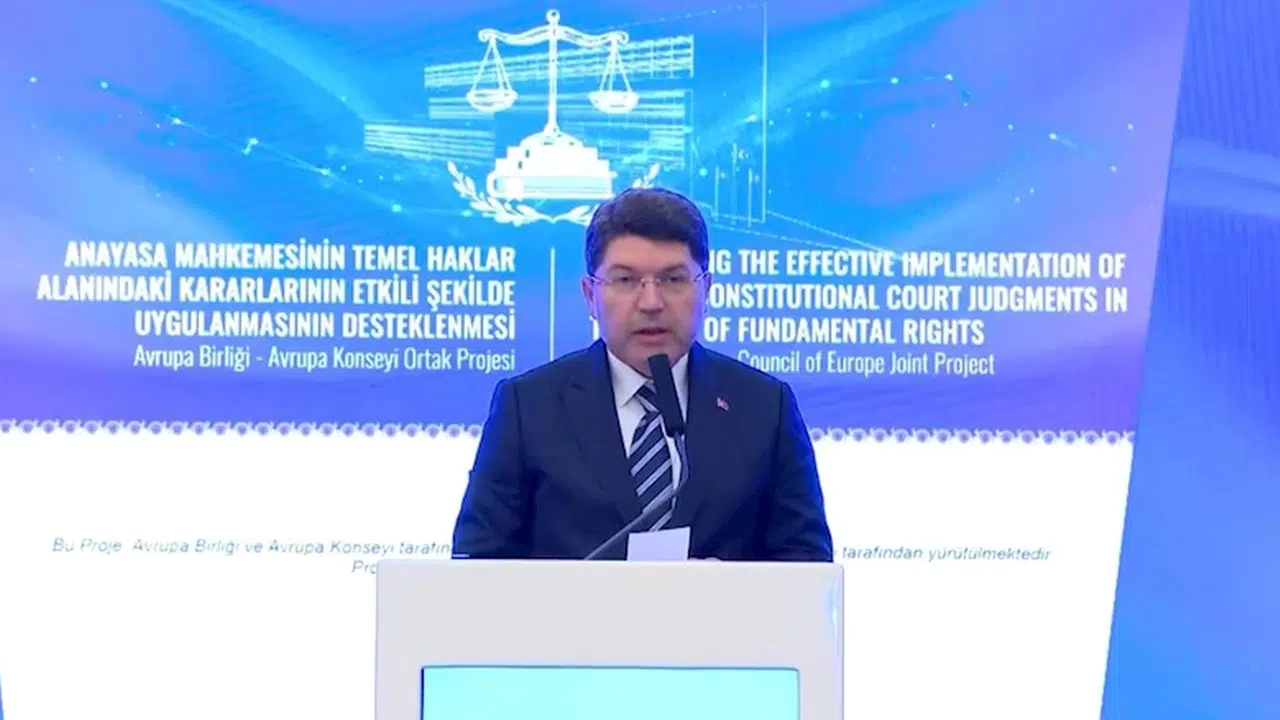 Adalet Bakanı Yılmaz Tunç, Ankara'da Anayasa Mahkemesi'nin 'Temel Haklar Alanındaki Kararlarının Etkili Şeklide Uygulanmasının Desteklenmesi Projesi' kapsamında hakimler ve savcılara yönelik düzenlenen Adil Yargılama Hakkı Eğitimi'nin açılış törenine katıldı. Törene Anayasa Mahkemesi Başkanı Kadir Özkaya, Yargıtay Başkanı Ömer Kerkez ile birçok yargı mensubu katıldı. Bakan Tunç, "Başarılı projelerimiz var. Yargıya çok önemli faydalar getirdiğine yürekten inanıyoruz. Bütün insanlar temel hak ve özgürlüklerinden eşit bir şekilde faydalanmalıdır. Üzülerek ifade ediyorum ki biz buradayken Filistin'de 8 aydan beri soykırım suçu işleniyor, insanlık suçu işleniyor. Evleri bombalanan insanlar çadırlarda kalıyorken, çadırların üzerine bomba atıyorlar. Mülteci kampları bombalanıyor. Maalesef 8 aydan beri insan haklarının tüm unsurları dünyanın gözü önünde yok sayılıyor" diye konuştu.