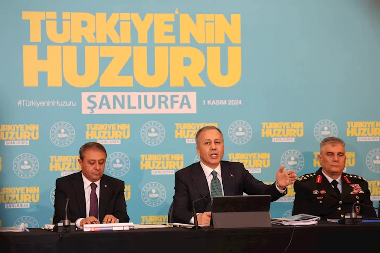İçişleri Bakanı Ali Yerlikaya, sabah saatlerinde geldiği Şanlıurfa'da düzenlenen güvenlik ve asayiş toplantısına katıldı. Kentteki bir otelde düzenlenen toplantıya Bakan Yerlikaya'nın yanı sıra Jandarma Genel Komutanı Orgeneral Ali Çardakçı, Emniyet Genel Müdürü Mahmut Demirtaş, Şanlıurfa Valisi Hasan Şıldak, İl Emniyet Müdürü Erdem Bildirici, İl Jandarma Komutanı Tuğgeneral Mücahit Avkıran ile milletvekilleri katıldı.