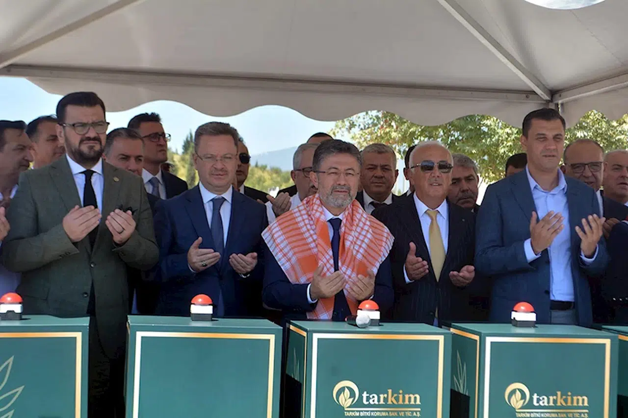 Tarım Kredi Grubu, TARKİM Bitki Koruma bünyesinde 'Bitki Koruma Ürünleri Üretim Tesisleri Temel Atma Töreni' düzenledi. Törene Tarım ve Orman Bakanı İbrahim Yumaklı, Manisa Valisi Enver Ünlü, Manisa İl Jandarma Komutanı Tuğgeneral Zafer Tombul, Manisa Büyükşehir Belediye Başkanı Ferdi Zeyrek, Turgutlu Belediye Başkanı Çetin Akın, Tarım Kredi Grubu Genel Müdürü Hüseyin Aydın katıldı. Saygı duruşu ve İstiklal Marşı'nın okunmasının ardından başlayan törende konuşan Bakan İbrahim Yumaklı, 69 milyar dolarlık tarımsal hasıla ile Avrupa'da 1, dünyada ise ilk 10 ülke arasında yer aldıklarını belirtti. Bakan Yumaklı, "Ülkemizin tarımsal ürün zenginliğini halkımızın hizmetine sunmak için son 22 yıldır sektöre destekler sağlıyor ve yatırımlar yapıyoruz. Bu sayede tarımsal üretimde Cumhuriyet rekorlarını her geçen yıl tazeliyoruz. 2023 yılında 139 milyon tonluk bitkisel üretim yaparak önemli bir rekora daha imza attık" ifadelerini kullandı.