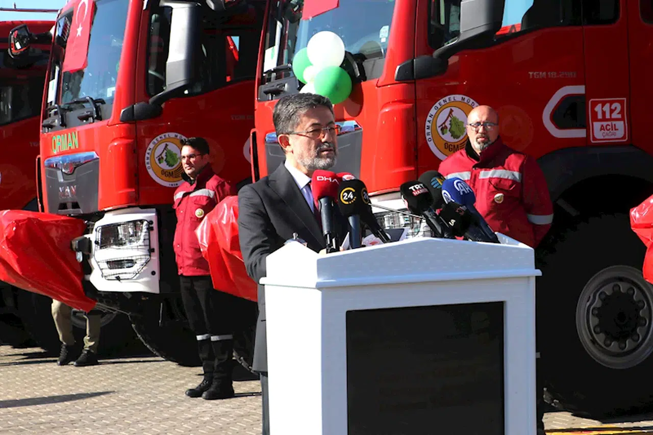 Bakan Yumaklı, orman yangınlarıyla mücadelede kullanılmak üzere alınan 65 arazöz ve 8 ilk müdahale aracının Orman Genel Müdürlüğü'nde düzenlenen teslim törenine katıldı. Yumaklı, söz konusu araçların bugünden itibaren Yeşil Vatanı savunmak için mesai yapacağını belirterek, "Son yıllarda iklim değişikliğinin yıkıcı etkisi tüm dünyayı etkilediği gibi Akdeniz havzasını da etkiledi. Bizim ülkemizin de burada olması hasebiyle iklim değişikliğinden ve küresel ısınmadan nasibini fazlasıyla almış oldu. Bu etkileri azaltmak için yeni normal dediğimiz unsurlara hazırlıklı olmak adına bütün planlamalarımızı yapıyor durumdayız. Bu hazırlıkların başında yangının çıkmasını engellemek adına eğitim ve bilinçlendirme çalışmalarının olduğunu söylemek gerekir. Bizim için çıkan yangınları söndürmekten daha ziyade başarı olarak gördüğümüz yangınların çıkmamasını sağlamak. Dolayısıyla biz şu anda mevsimden de istifade ederek hız kesmeden bütün teşkilatımız; sahada, köylerde, ilçelerde, mezralarda, velhasıl orman yangınlarının başlama potansiyeli olan ya da risk altında olan yerlerde, tıpkı 'tarım sahada' dediğimiz gibi hassas alanlarda arkadaşlarımız bu eğitim ve bilinçlendirme çalışmalarına devam ediyor" diye konuştu.