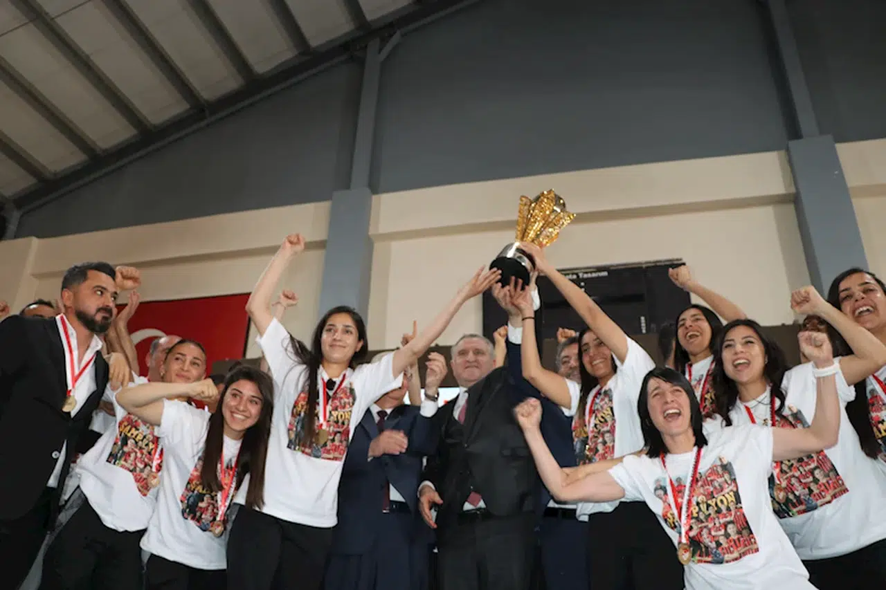 Törende konuşan Milli Savunma Bakanı Yaşar Güler, geçen yıl 2'nci Lig’den 1'nci Lig’e, bu yıl da Süper Lig'e çıkan Yüksekova Spor Kadın Futbol Takımı’nı başarısından dolayı kutladıklarını belirtti. Yüksekova Spor'un tarihe geçtiğini söyleyen Bakan Güler, "Ben de 1'inci Lig ve Play-Off maçlarınızı çok yakından ilgiyle ve heyecanla takip ettim. En son zaferi getiren pazar günkü maçta üstün bir performans sergilediniz. Sizlerle ne kadar gurur duyduğumuzu da bir kez daha ifade ediyorum. Elbette bu başarının arkasında kulüp yöneticilerinin, teknik ekibin ve kıymetli ailelerinizin de büyük payı var. Bu vesileyle takımınızın başarısı için büyük emek sarf eden başkanımıza, antrenörlerimize ve değerli ailelerinize de özellikle teşekkür ediyorum. Değerli evlatlarım, sizlerin başarısı yalnızca bir kupa kazanmak değildir. Bu Yüksekova'dan yükselen umut dolu bir başarı hikayesinin ve kadınların sahada olduğu kadar hayatta da ne kadar güçlü olabileceklerinin bir ispatıdır. Sizler sadece birer sporcu değil, aynı zamanda rol modelsiniz. Çocuklara, genç kızlarımıza hatta yetişkinlere 'Ben de yapabilirim' dedirten bir ilham kaynağı oldunuz. Öyle ki elde ettiğiniz sportif başarılar kızlarımızın ve kadınlarımızın spora katılımını teşvik ediyor. Onlara örnek oluyorsunuz" dedi.