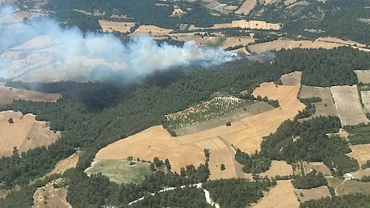 Yangın, saat 13.00 sıralarında Altıeylül ilçesi kırsal Tayyipler Mahallesi'ndeki arazide çıktı. Rüzgarın da etkisiyle büyüyen alevler, ormana sıçradı. İhbar üzerine bölgeye uçak, helikopter ve arazözler sevk edildi. Alevlere, havadan ve karadan müdahale ediliyor. (DHA)