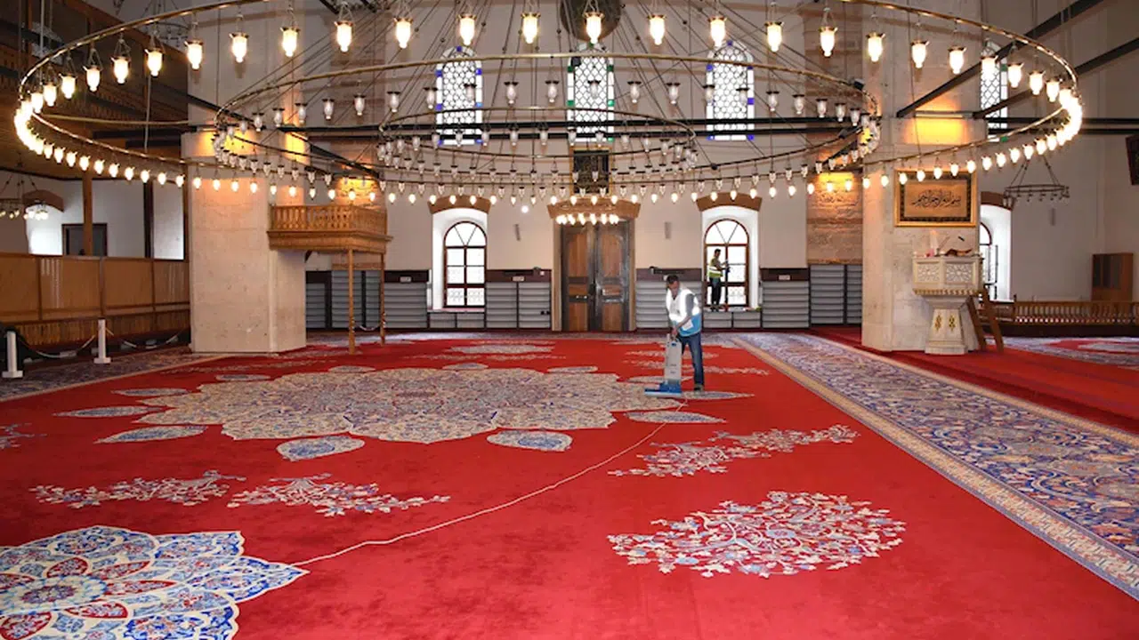 BALIKESİR, (DHA)-BALIKESİR'de yaklaşan Kurban Bayramı öncesinde cami ve cem evleri, Büyükşehir Belediyesi ekipleri tarafından temizleniyor.