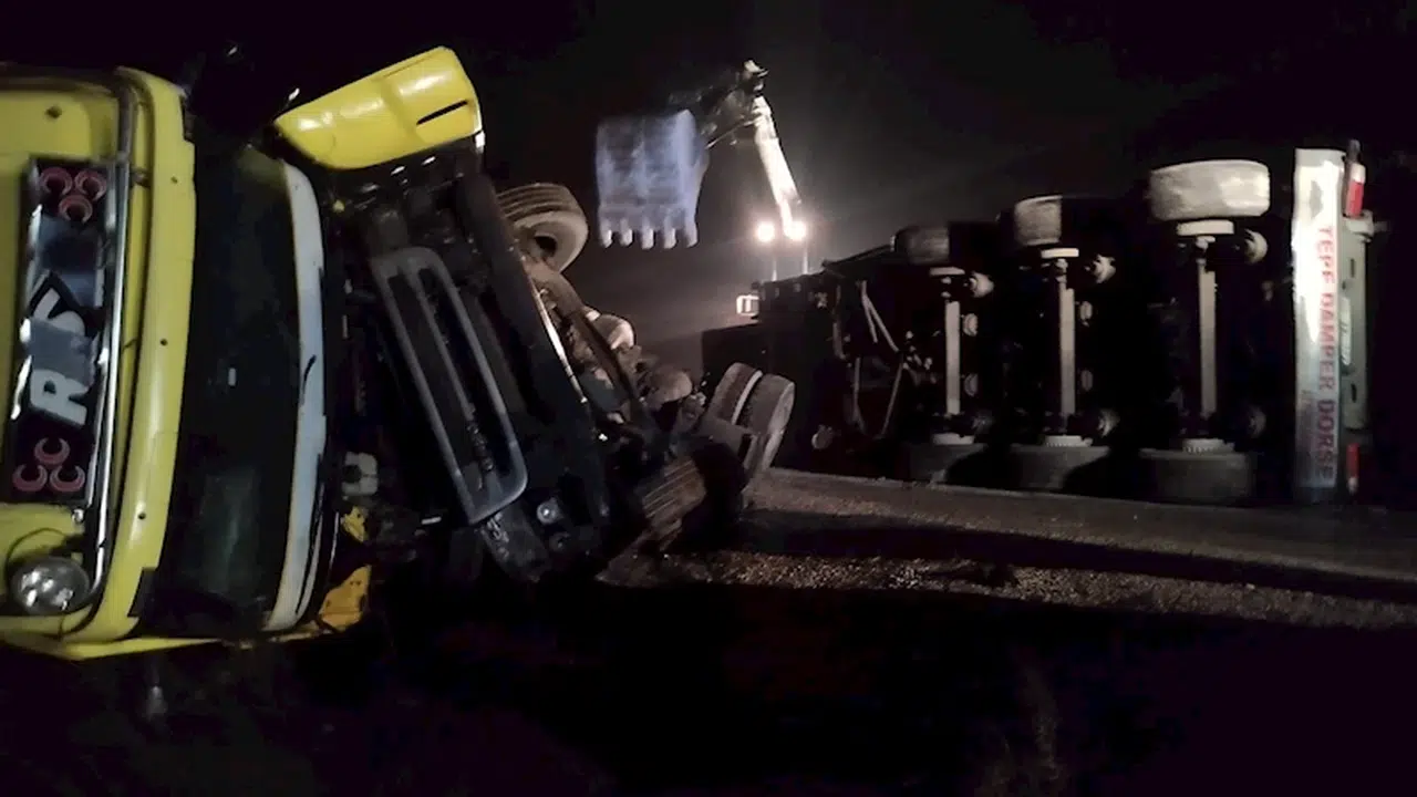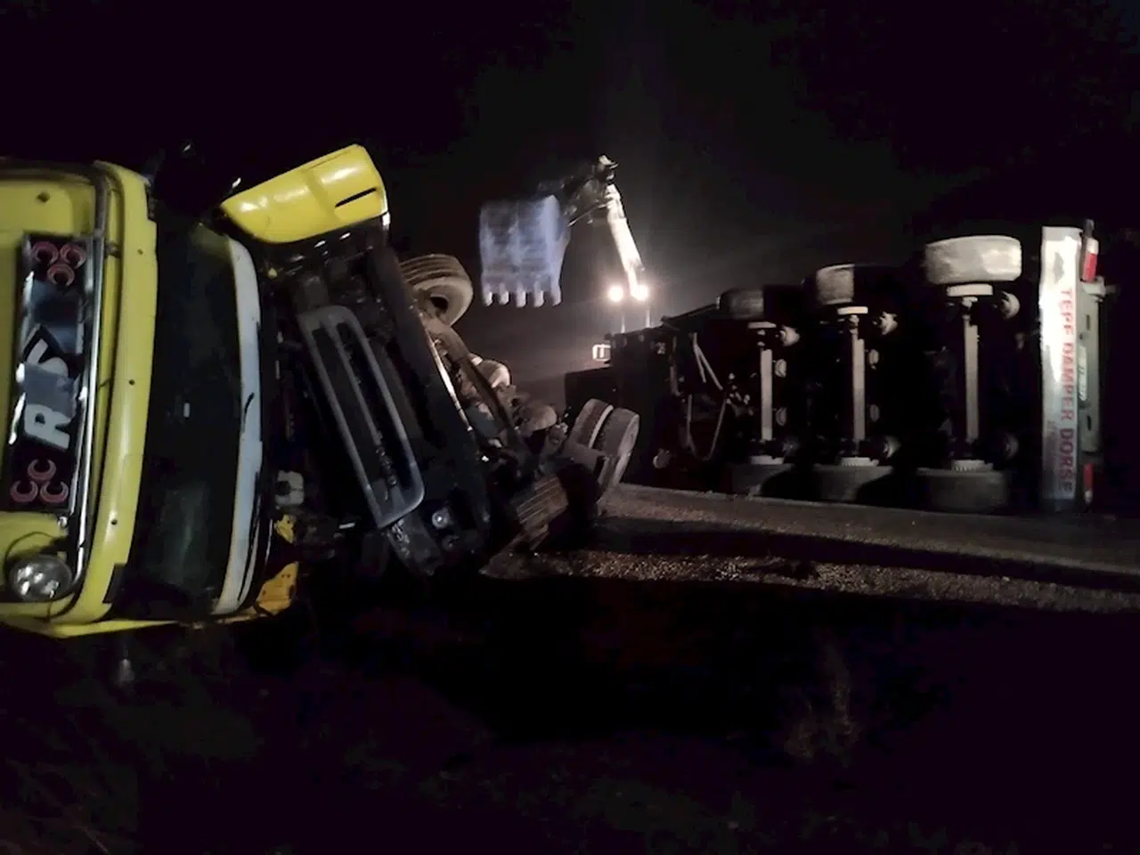 Balıkesir'de devrilen mermer yüklü TIR'ın şoförü yaralandı
