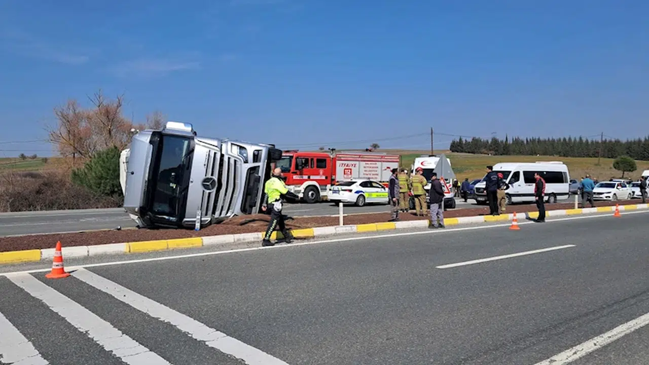 Kaza, saat 13.00 sıralarında Balıkesir-Edremit kara yolu Çağdaşkent mevkiinde meydana geldi. Balıkesir'den Edremit yönüne giden Mustafa Yeşiltaş, kullandığı 81 ADB 127 plakalı TIR'ın direksiyon hakimiyetini kaybetti. Kontrolden çıkan TIR devrildi. Yoldan geçen diğer araç sürücülerinin ihbarı üzerine olay yerine sağlık, polis ve itfaiye ekipleri sevk edildi. Yaralanan TIR şoförü ambulansla Balıkesir Şehir Hastanesi'ne kaldırıldı. Kaza nedeniyle yol, Balıkesir yönünden tek yönlü olarak kontrollü şekilde verildi. Devrilen TIR'ın kaldırılmasıyla birlikte trafik akışı normale döndü. Polis, kazayla ilgili soruşturma başlattı. (DHA)