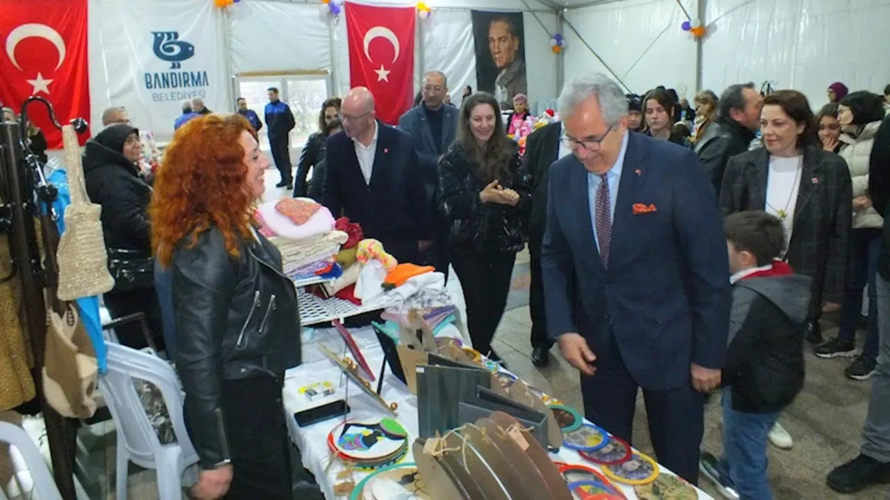 Bandırma Belediyesi tarafından düzenlenen ve ev ekonomilerine katkı sağlamak amacıyla 160 kadının katıldığı ‘3’üncü Kadın El Emeği Festivali’ başladı. Bandırma Cumhuriyet Alanı'nda gerçekleştirilecek festival, 12 gün boyunca . kadınların el emeği ürünlerini sergileyip satış yapmalarına olanak sağlayacak. Festivalin açılışında kurdelesini, CHP Balıkesir Milletvekili Serkan Sarı ile kesen Bandırma Belediye Başkanı Dursun Mirza yaptığı konuşmada, el emeğiyle üretim yaparak ev ekonomilerine katkı sağlayan tüm kadınların yanında olduklarını söyledi.
