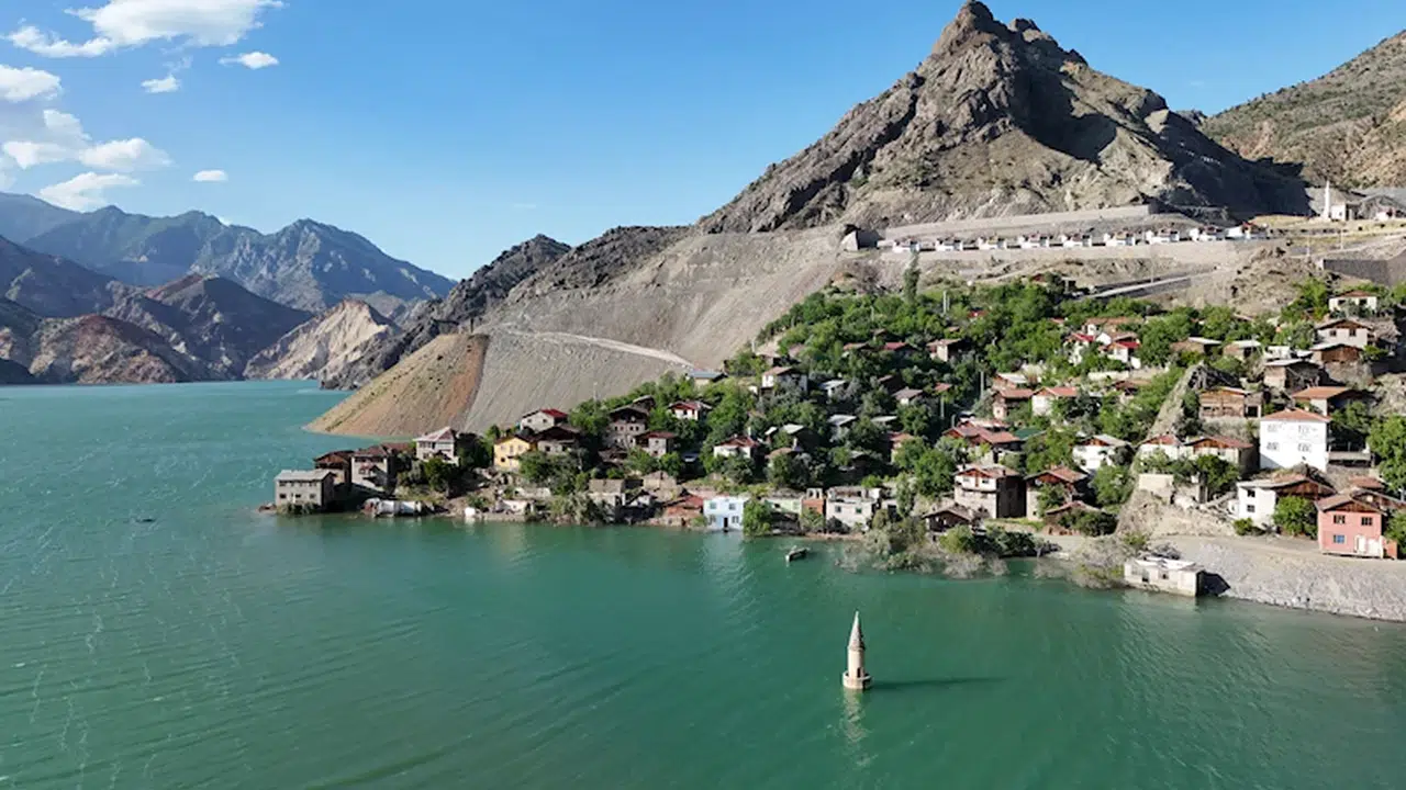 Baraj suyu köyü ikiye böldü; taşınmayan evlerde göl manzarası