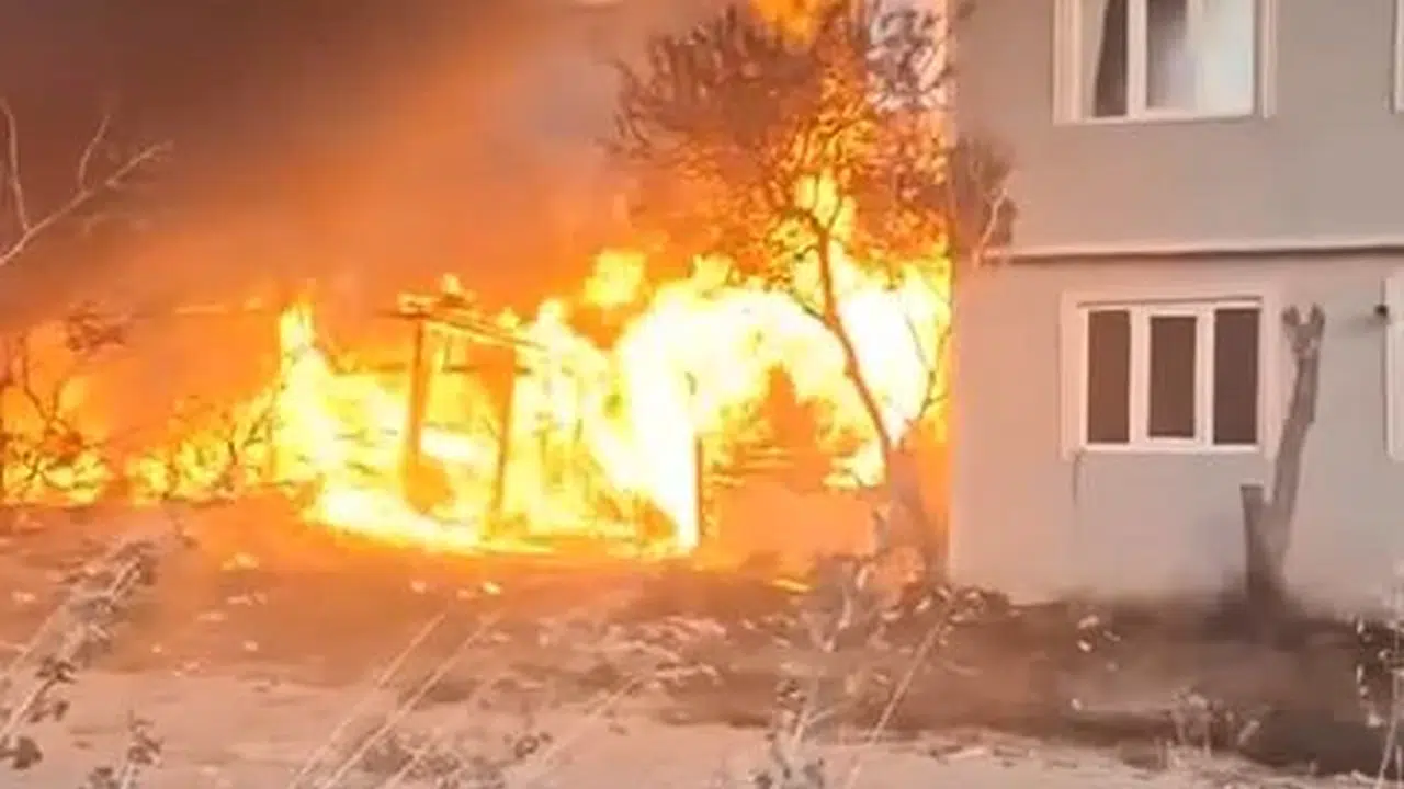 Yangın saat 21.00 sıralarında merkez Osmangazi ilçesi Geçit Mahallesi'nde bir barakada çıktı. Kısa sürede büyüyen yangında alevler, bitişikte bulunan 2 eve sıçradı. İhbar üzerine adrese çok sayıda itfaiye, polis ve sağlık ekibi sevk edildi. Olay yerine gelen itfaiye ekipleri alevlere; sağlık ekipleri de dumandan etkilenen 2 kişiye müdahale etti. Ekiplerin yaklaşık 1 saatlik çalışmasının ardından yangın söndürülürken, iki evde zarar oluştu. Yangının çıkış nedeninin belirlenmesi için soruşturma başlatıldı. (DHA)